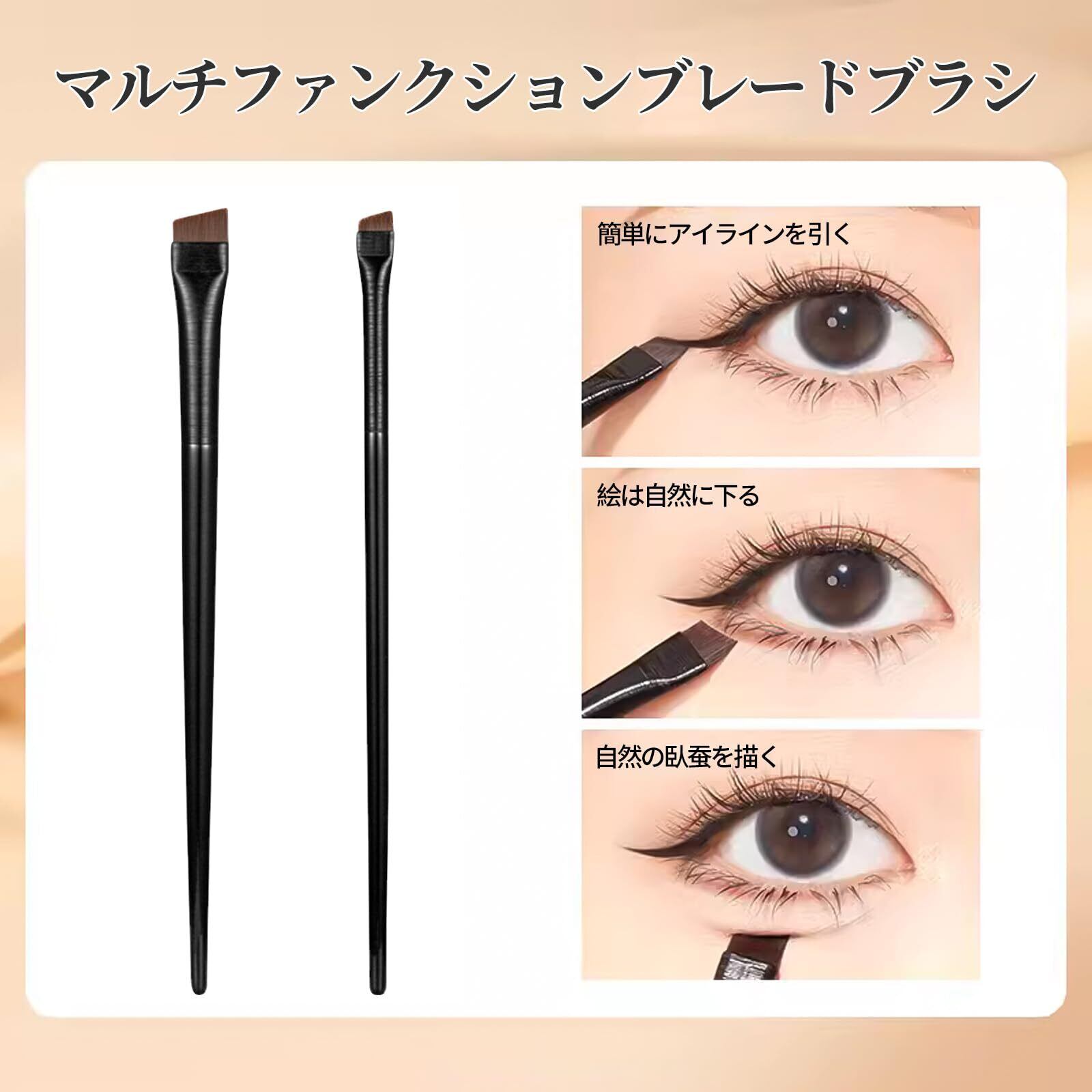 Doyime アイブロウブラシ アイライナーブラシ (2本セット) メイクブラシ 眉毛筆 化粧ブラシ 斜め型ブラシ 高級繊維毛 柔らかい 描きやすい 極細 携帯便利