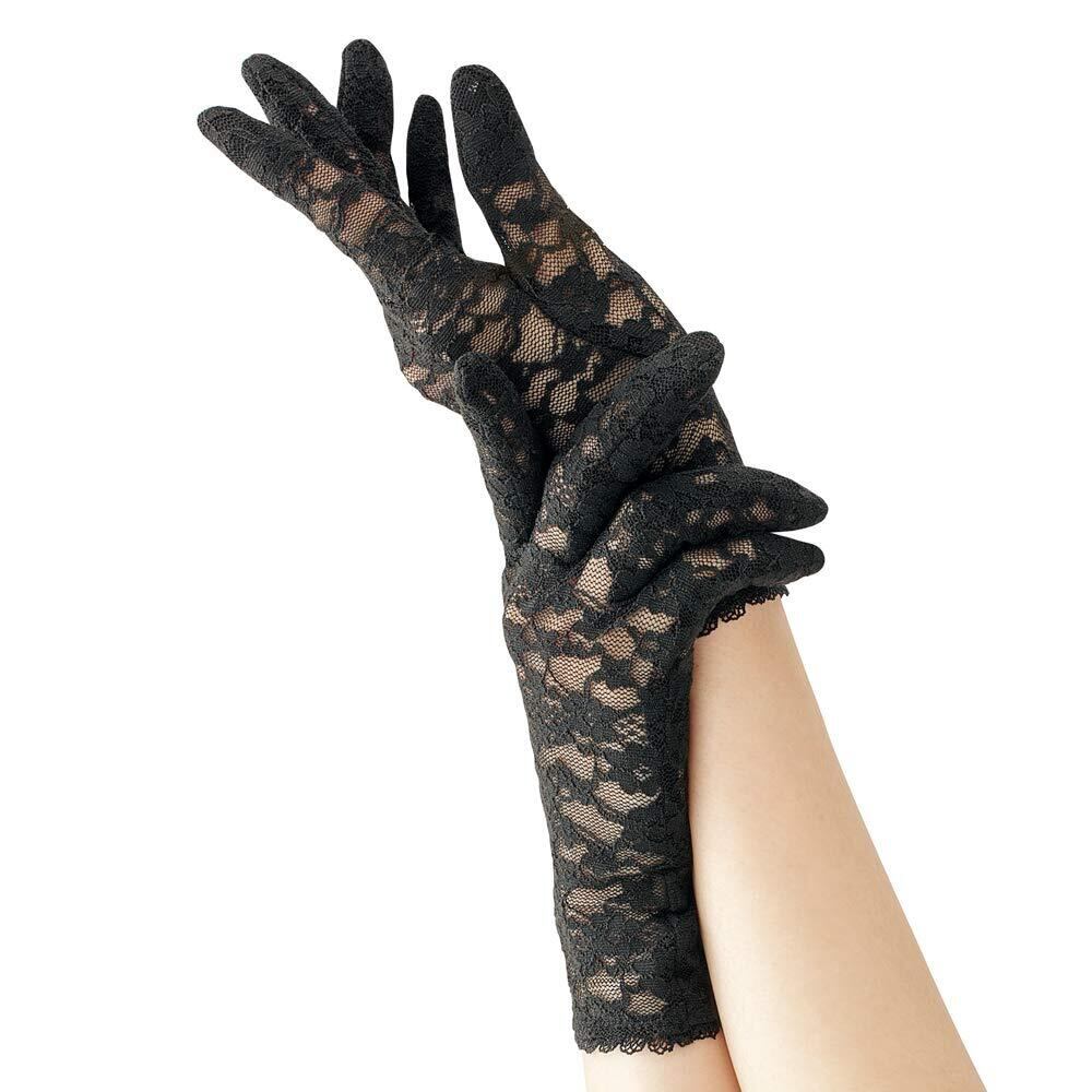 【新着商品】メイダイ(MEIDAI) 手袋 ブラック レースグローブ black パーティードレス レース ショート丈グローブ パーティー小物 結婚式 二次会 発表会 披露宴 ハロウイン 仮装 冠婚葬祭 黒色 フォーマルファッション(ネイルも隠れる フォーマル手袋)