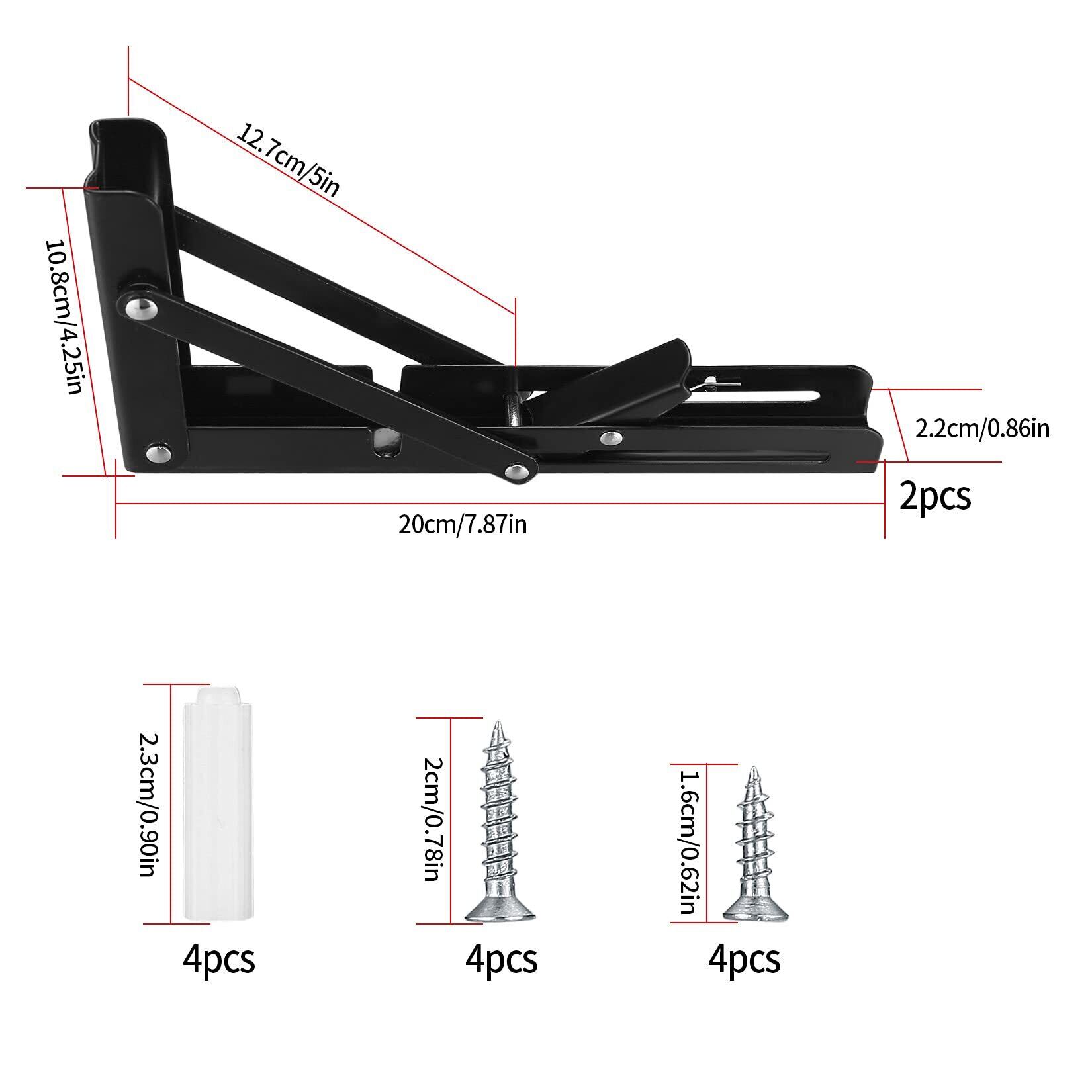 【特価商品】2本セット 棚受け 金具 L字型 折りたたみ 棚支え ブラケット ステンレス 棚 受け 金具 折り畳み金具 折りたたみ アイアン 金具 折りたたみ棚ブラケット ホーム キッチン オフィス テーブル ウォール用 - ブラック