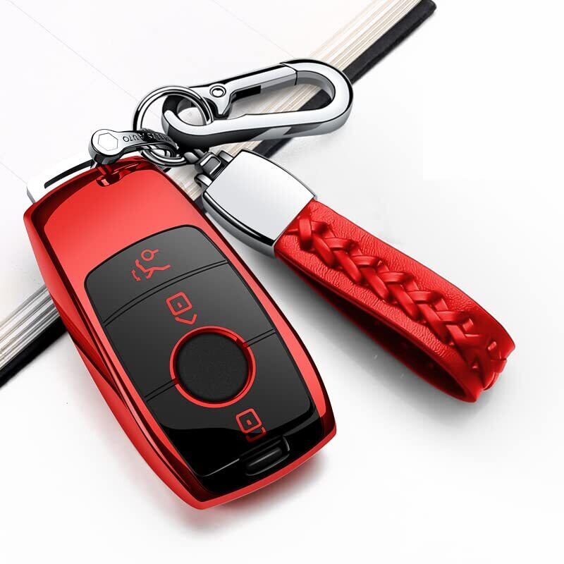 【在庫処分】カーキーカバー、保護カバー、リモコンカバー、TPUキーカバー。ためにメルセデスベンツ キーカバー TPU製 全5色 キーケース メッキ E クラス A クラス など スマートキー キーホルダー (レッド)