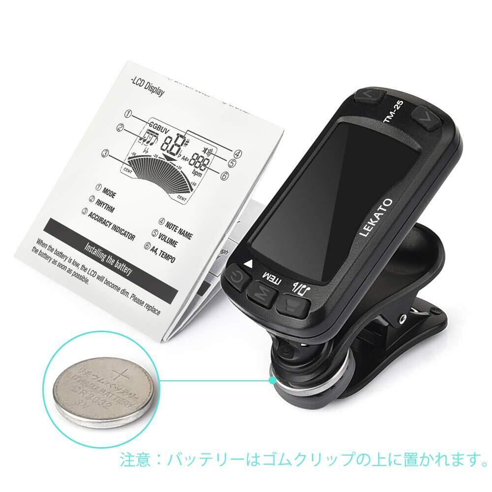 クリップチューナー ギターチューナー ギター/ベース用 3 in 1 ブラック LEKATO ギター/ベース/ウクレレ/ヴァイオリン/クロマティック ワイドディスプレイ