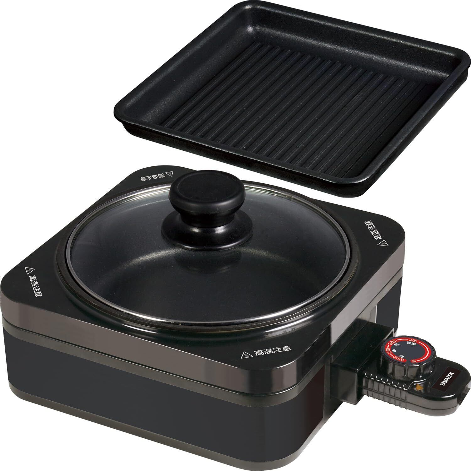[山善] ホットプレート グリル鍋 一人暮らし プレート2種 (波型プレート/鍋プレート) 着脱式プレート 温度調節機能付き ブラック YHC-W601(B)