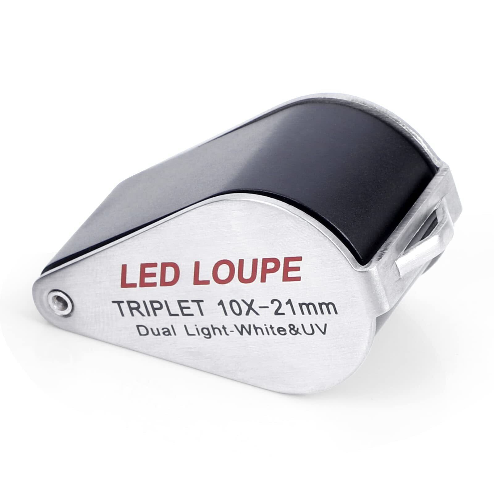 WOVTE折りたたみ式 ルーペ 10倍 手持ち拡大鏡 虫眼鏡トリプレットレンズ LED/UV ライト付き ルーペ 紙幣 切手 コイン 宝石鑑定用 携帯式 ジュエリールーペ(10x21mm 倍率)