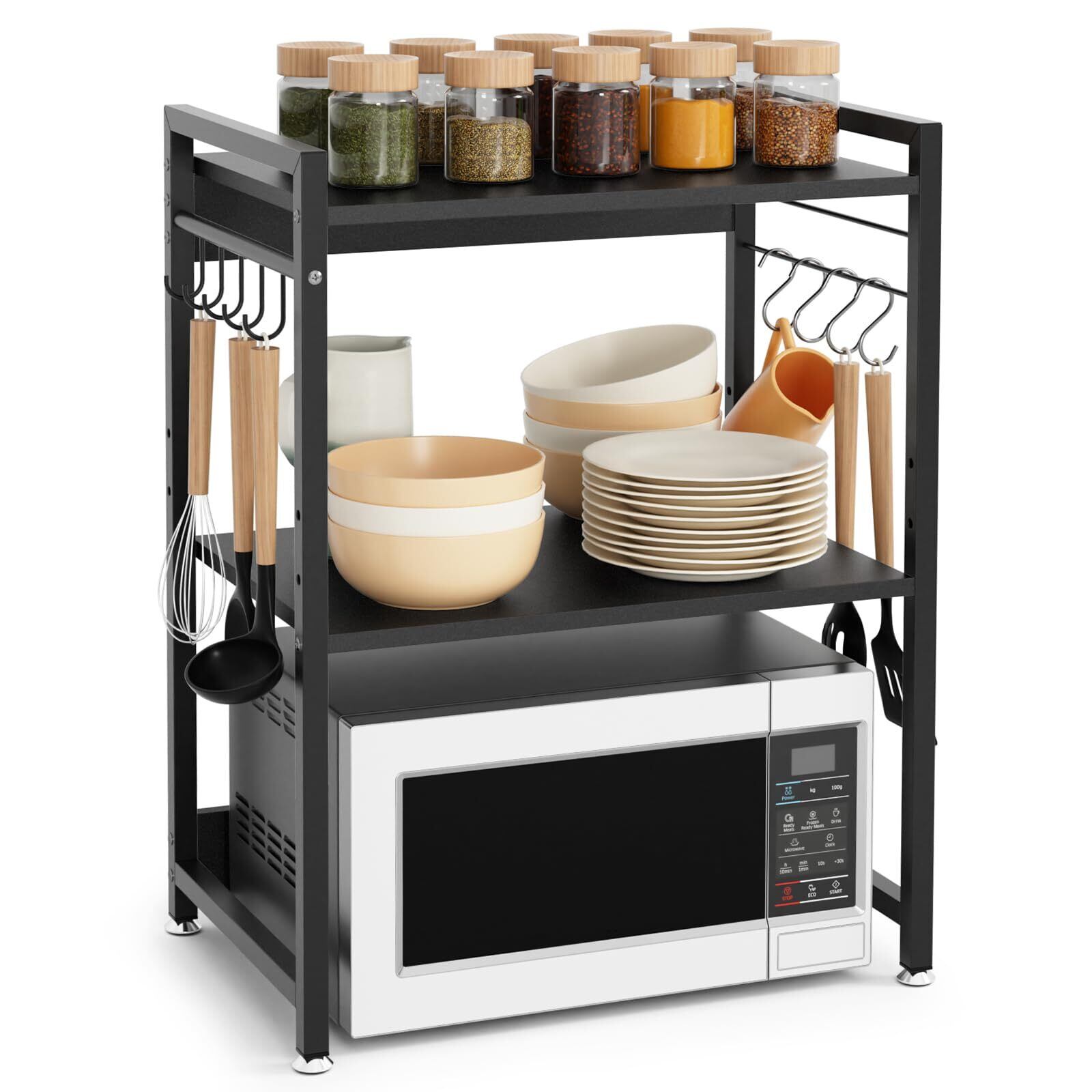 【人気商品】DEWEL レンジラック レンジ台 レンジ上ラック キッチンラック 中棚板高さ調節可 フック付き 幅53cm 食器棚 トースターラック ラック アジャスター付き キッチン収納 省スペース ブラック