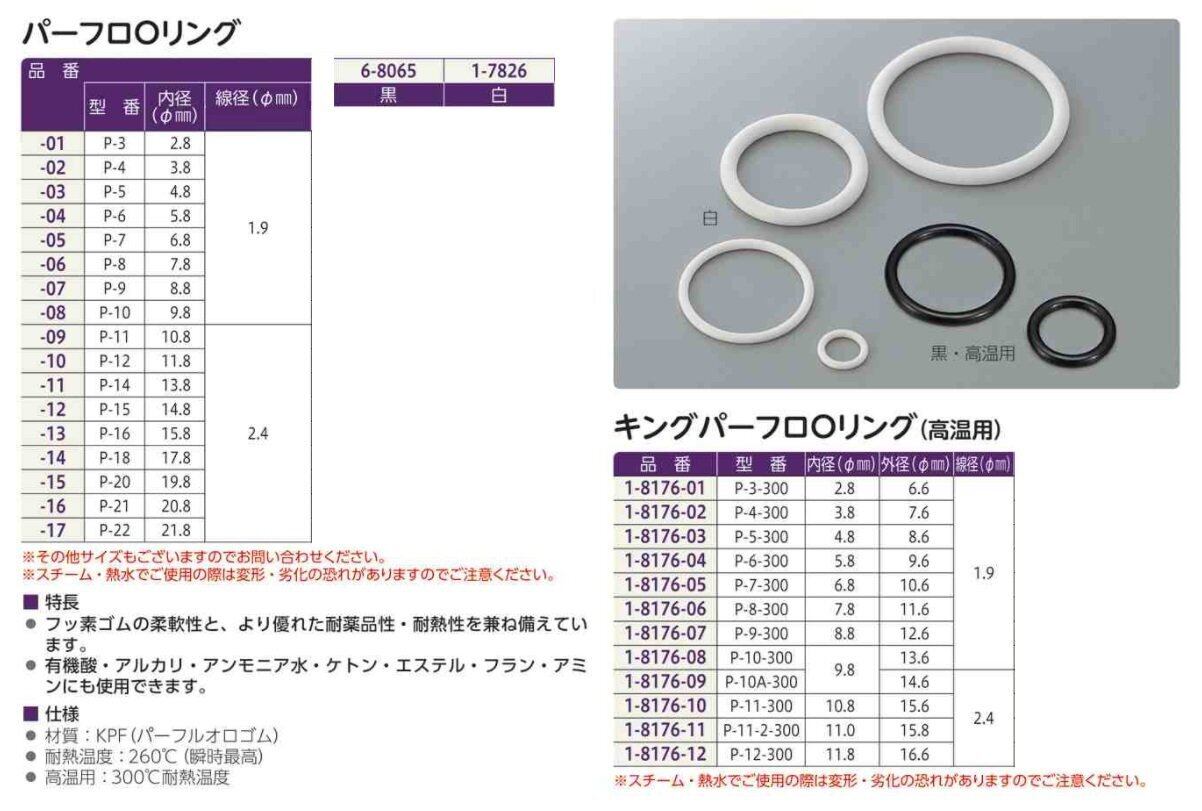<br>●フッ素ゴムの柔軟性と、より優れた耐薬品性・耐熱性を兼ね備えています。<br>●有機酸・アルカリ・アンモニア水・ケトン・エステル・フラン・アミンにも使用できます。