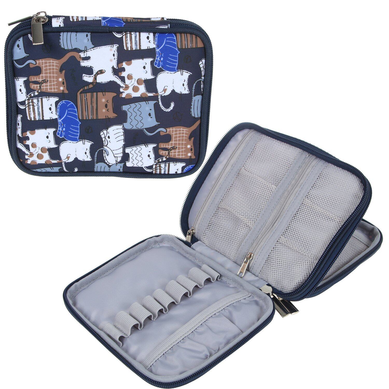 Teamoy お手頃かぎ針収納ケース 二層式 かぎ針セット・かぎ針編みのアクセサリー・クラフトツール・筆記用具 保管 持ち運び 可愛い プレゼント(針が含まない)猫ブルー