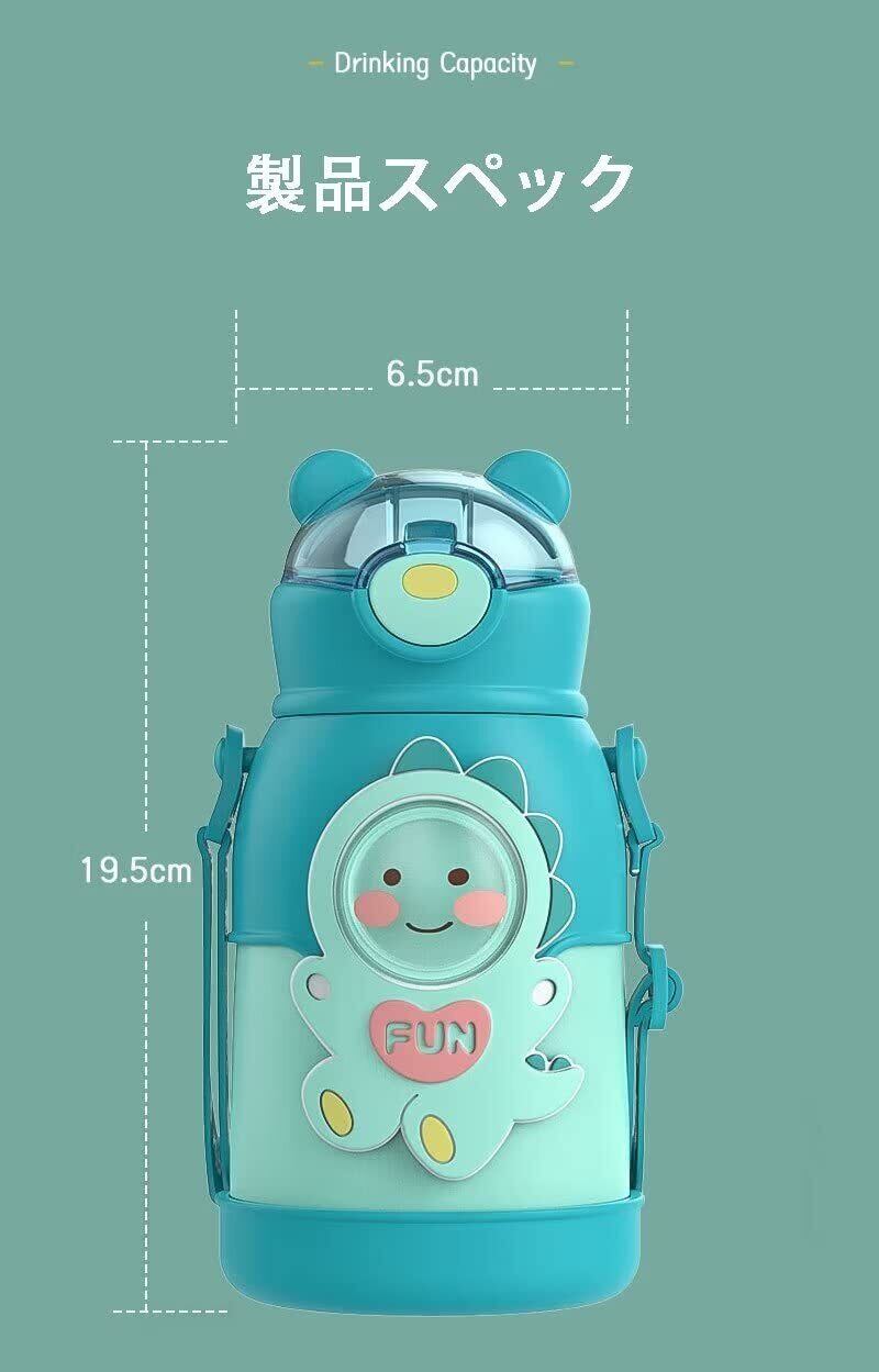 【在庫処分】Godfun 水筒 子供 500ml 真空断熱 魔法瓶 ストロー付き 316ステンレス ワンタッチ ストロー付き ストラップ アニメ かわいい 携帯に便利 学生 500ml-Style4