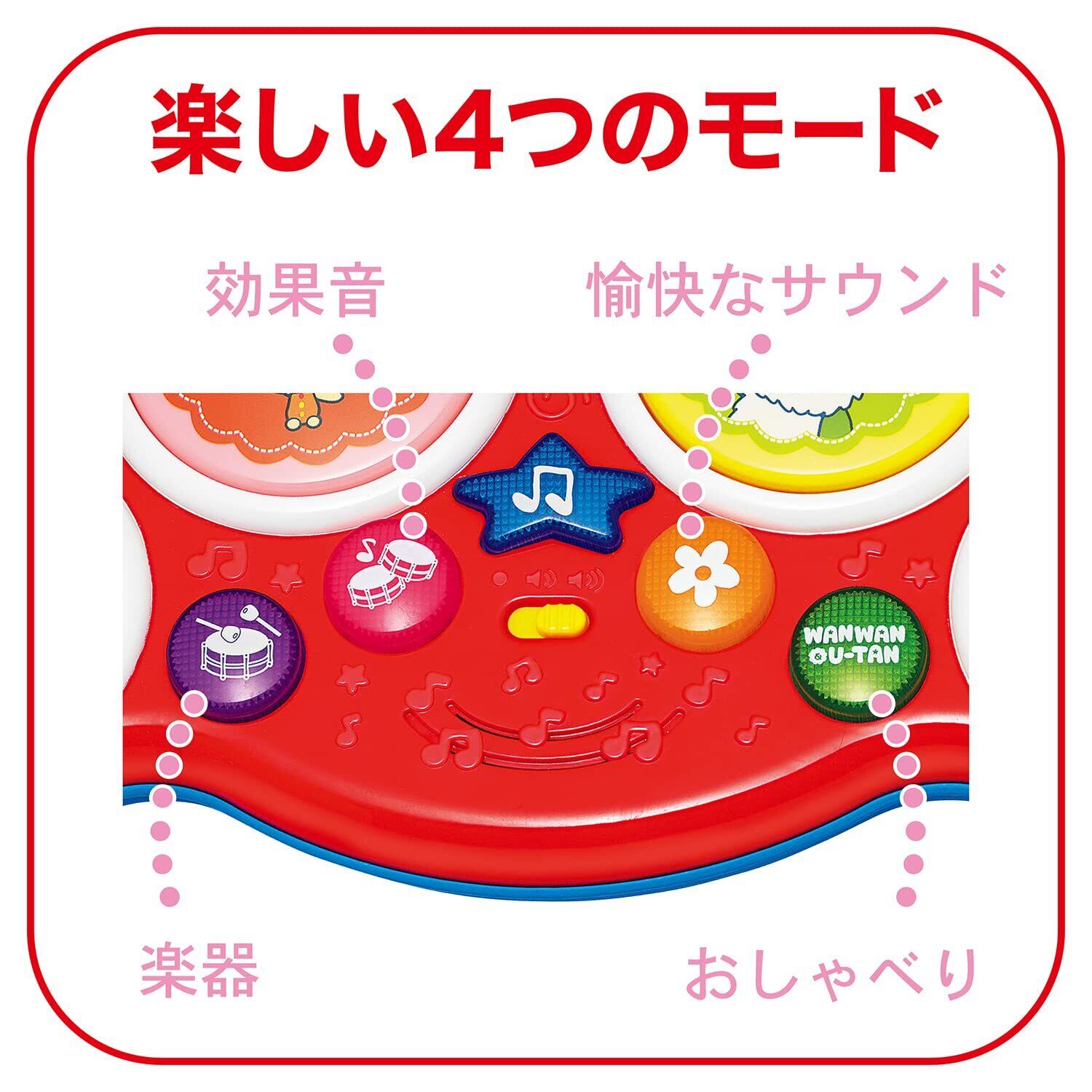 【リズムに合わせて楽しくタッチ】 お子様のリズム感や音感を育てる知育玩具です。2曲の歌と、4つのモードで9種類のワンワン、うーたんのボイスや24種類の音で楽しくリズム遊びができます。4つのモードがあり、楽器モード:押すとライトが点灯し2種類のドラム音が選択できます。効果音モード:押すとライトが点灯し2種類の効果音が選択できます。/ 愉快なサウンドモード:押すとライトが点灯し2種類の愉快な音が選択できます。