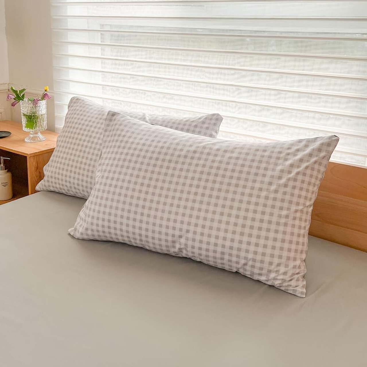 【特価セール】NSNLGSGC 布団カバー セミダブル 4点セット 布団かばー ベットカバー セット グレー チェック 柄 北欧 洋式・和式兼用 8ヶ所ヒモ付き 洗い替え速乾 防ダニ