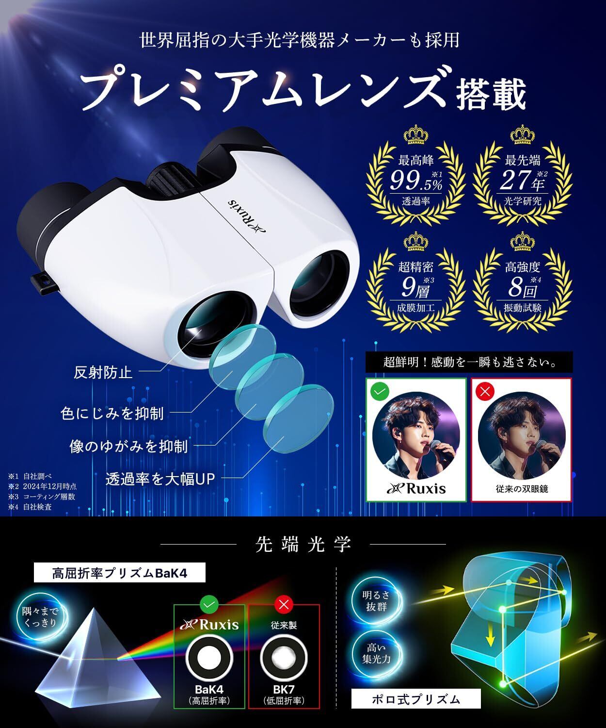 【新着商品】【眼科医x東大卒の工学博士が開発】 双眼鏡 ライブ用 10倍 オペラグラス コンサート用 スポーツ観戦用 超軽量 140g 【日本ブランド】 Ruxis (ホワイト)