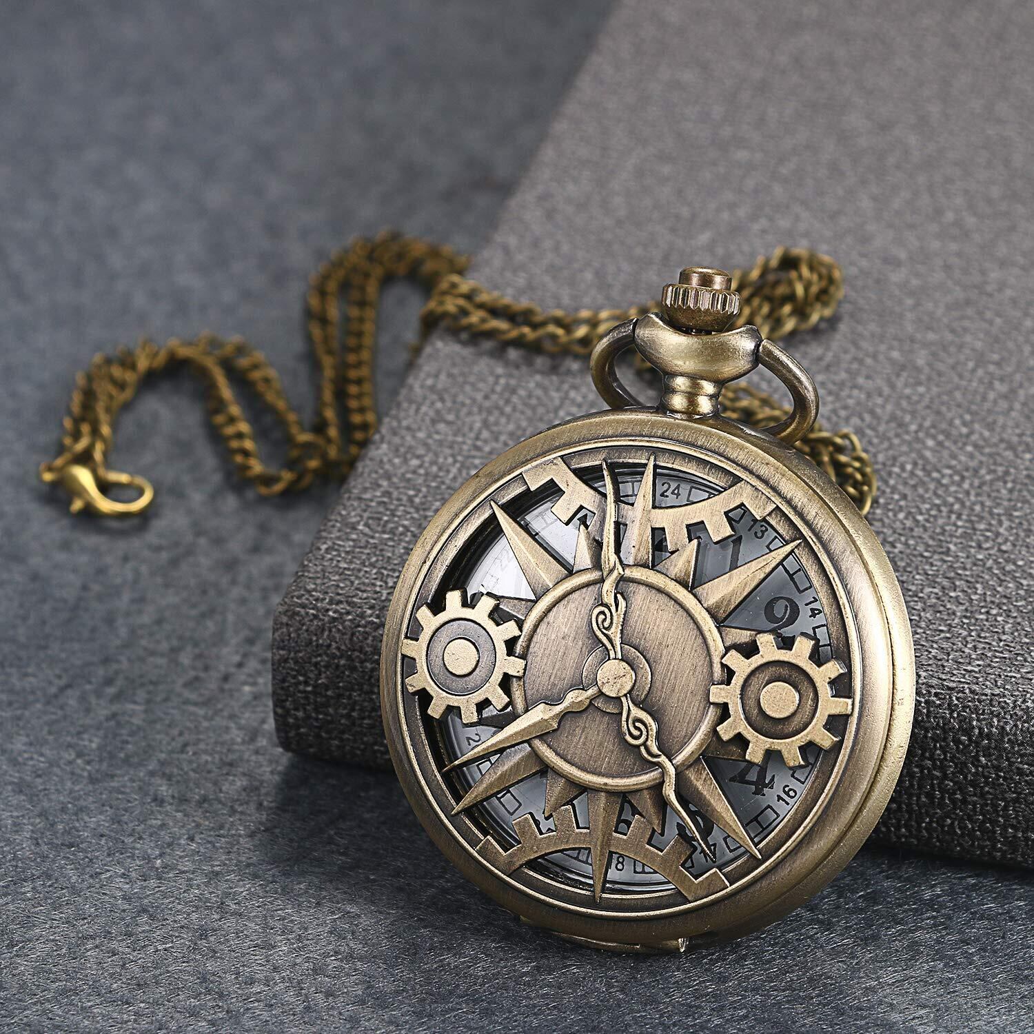 【数量限定】JEWELRYWE 懐中時計 スケルトン アンティーク風 数字 アナログ ペンダントウォッチ ポケットウォッチ 防水 合金 ブロンズ 成人式 誕生日 記念日 父の日 クリスマスのプレゼント