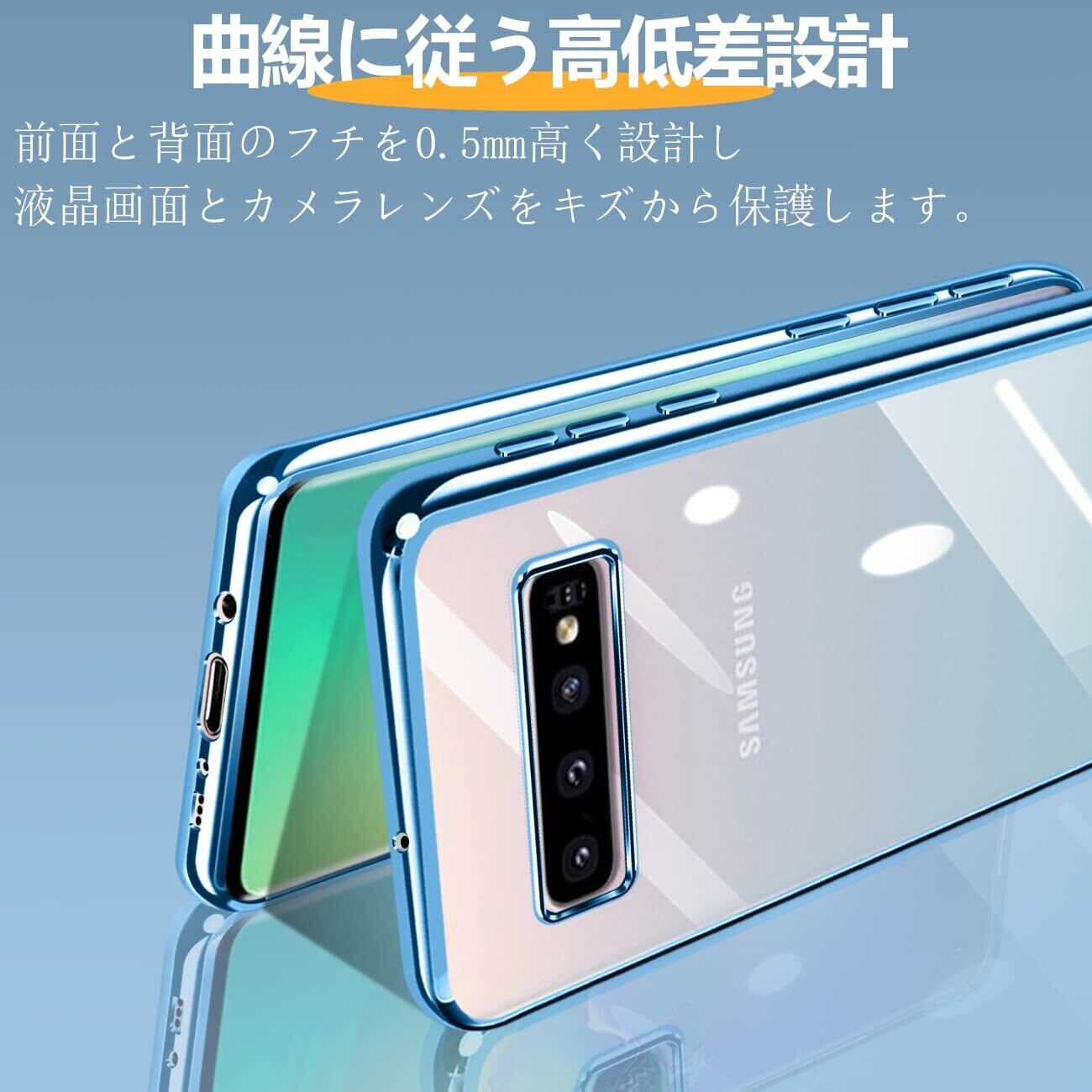 【特価商品】Galaxy S10 ケース クリア 耐衝撃 SC-03L SCV41 カバー 透明 保護カバー 韓国 かわいい 薄型 柔軟 軽量 TPU メッキ加工 ソフトケース 人気(ブルー)