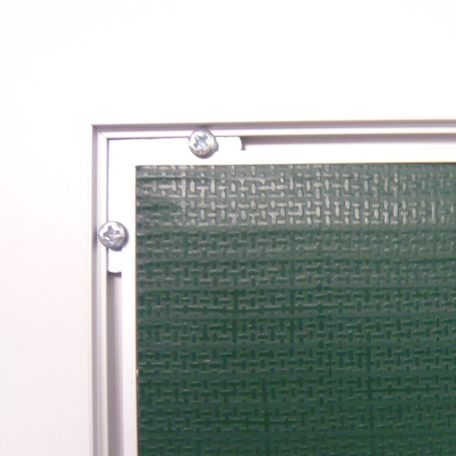 フレーム:アルミ、表装材:R-PETシート(厚み:約0.4㎜)、裏板:グリーンダンボール(古紙パルプ配合)