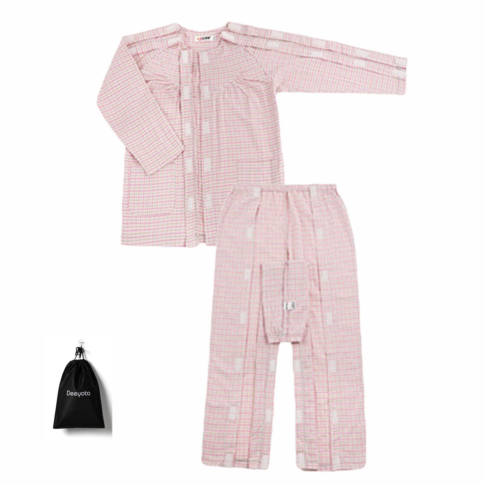[DEEYOTA] 介護用パジャマ 春夏向き 男性用 女性用 マジックテープで全開 通年用 全開 パジャマ 寝たきり 寝たきり 入院 点滴 お着替え介助 高齢者
