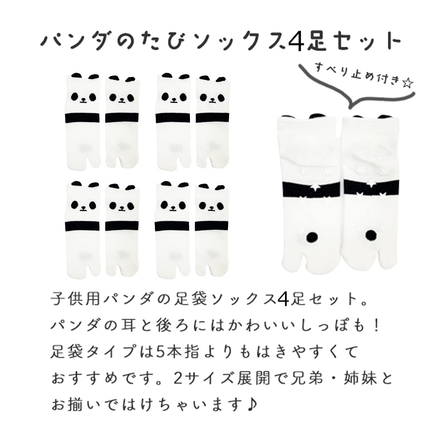 パンダの足袋ソックスの4足セットです。 まだ5本指が苦手なお子さんでも楽に 履けるのでおススメ