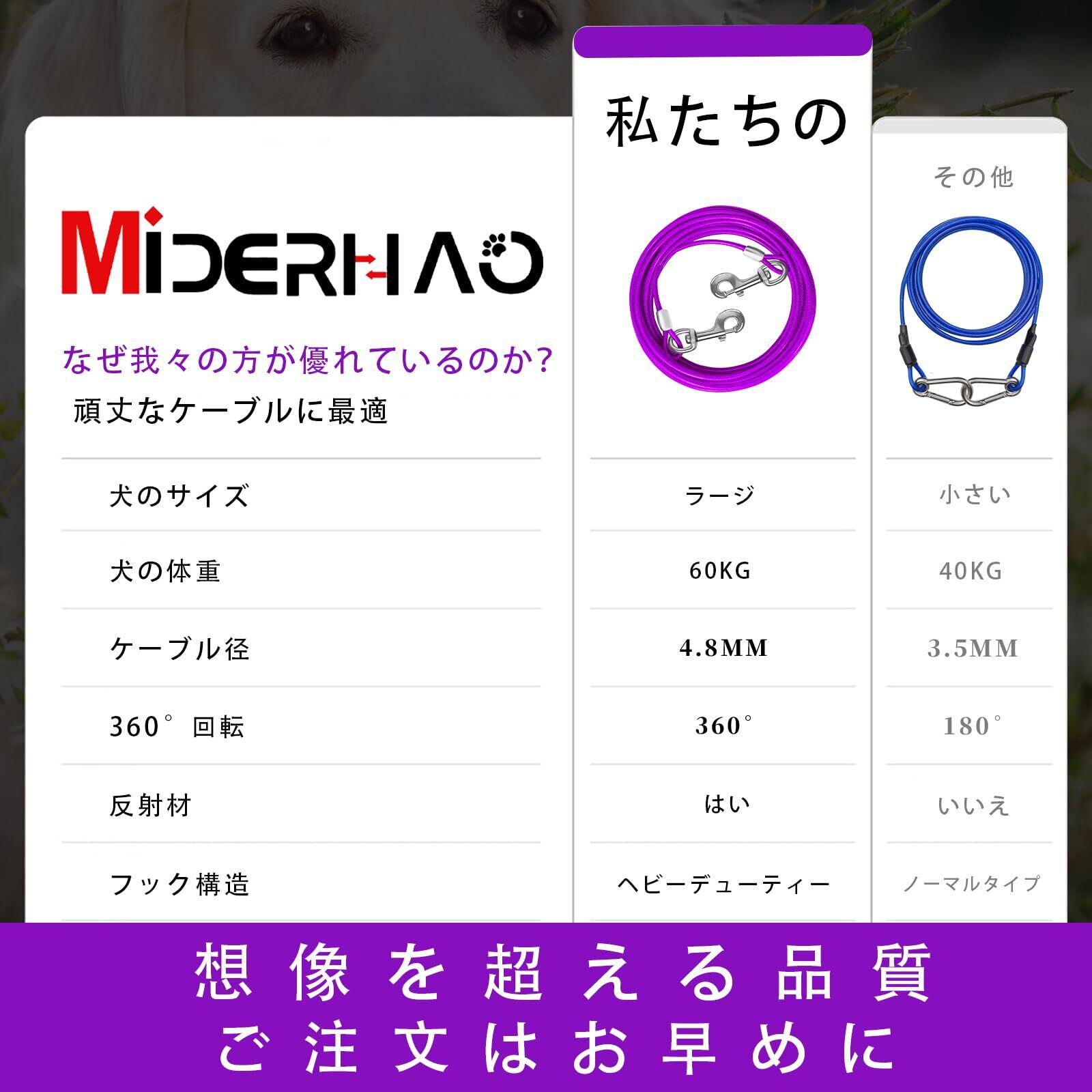 MiderHao ドッグアンカー 犬 鎖 3/4.5/6/7.5/9M 係留 ケーブル ワイヤーリード 60KG 犬 ケーブル ワイヤーロープ庭用リード