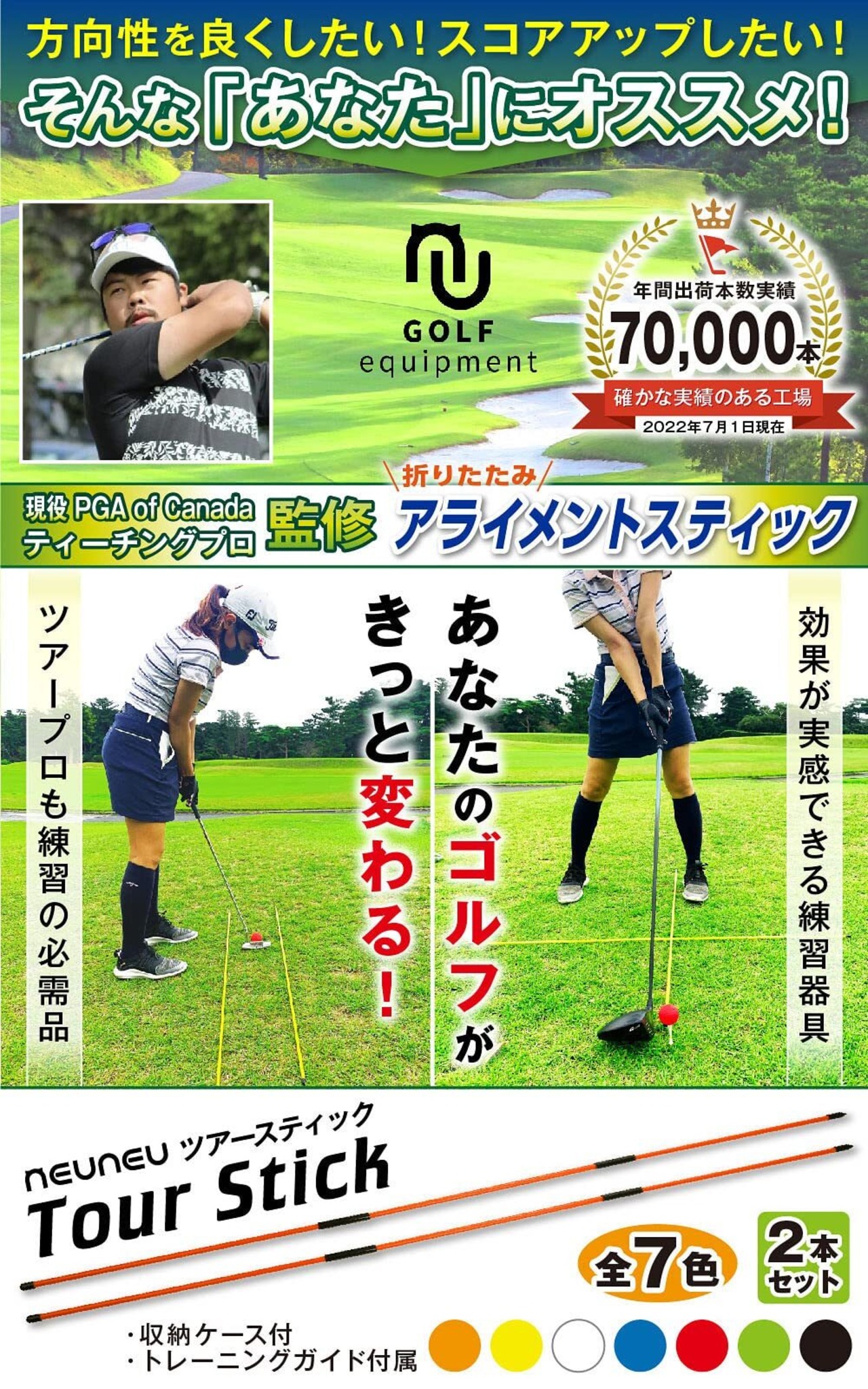 アライメントスティック 【方向性のお悩み解決】 ゴルフ 練習器具 【PGAプロ監修】 折りたたみ スティック ゴルフ練習 スイング 練習 器具 ツアースティック neuneu