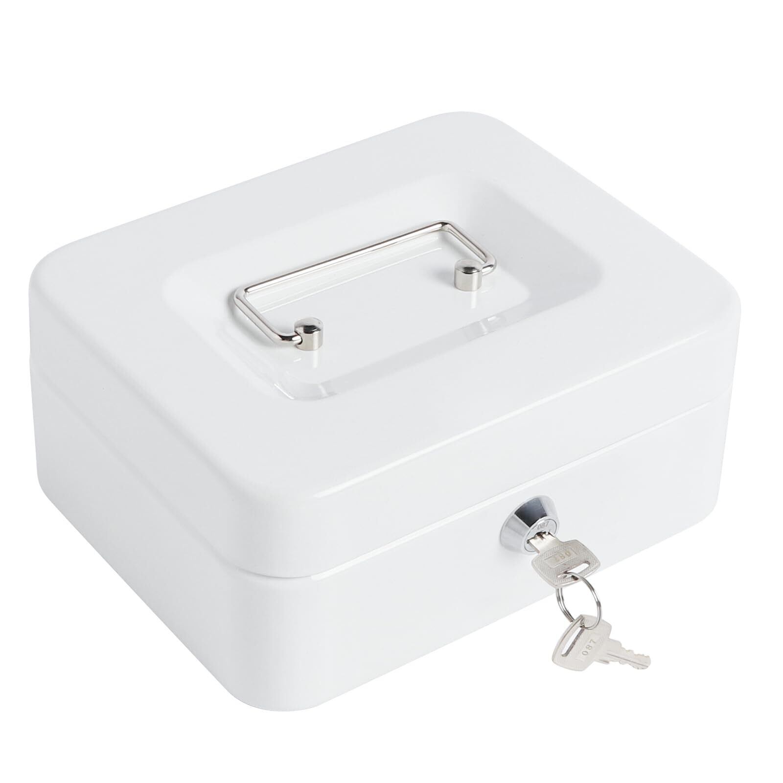 Jssmst (ジェスマット) 手提金庫 キャッシュボックス 会計 オフィス 簡易金庫 貯金箱 金属製 20x16x9cmキーロック式 金属製 20x16x9cm コイン収納 (ホワイト)