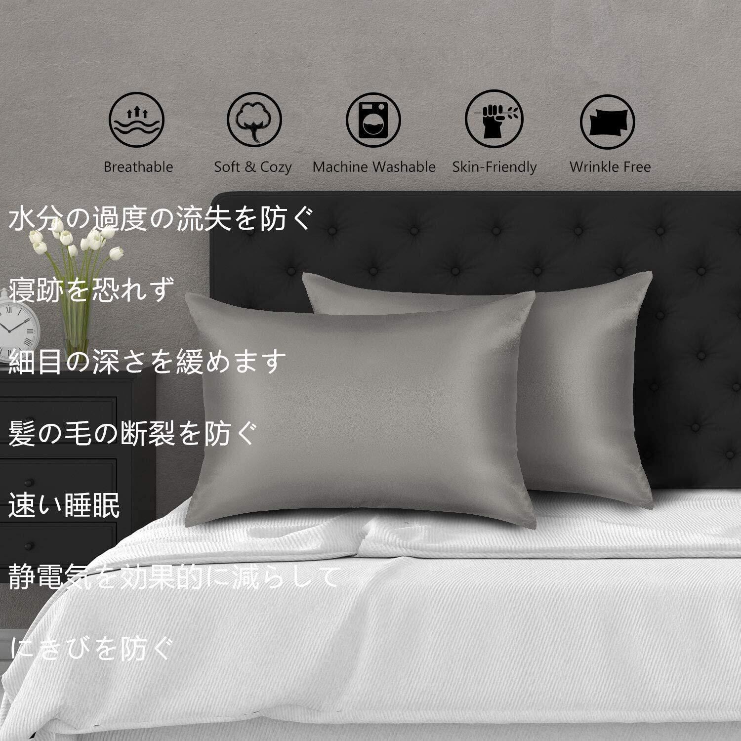 【在庫セール】枕カバー 2枚セット サテンの枕カバー 封筒式ピローケース 美肌 美髪 両面シルクタイプ 滑らかな材質 静電気防止 (50*70, グレー)