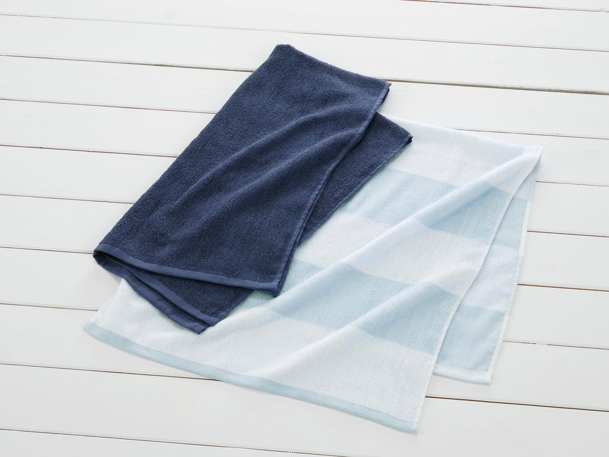 Kosugizen ミニバスタオル パステルボーダー&カラー ブルー 50×100㎝ 小さなサイズのバスタオル デイリーユース 2枚セット ZGTF-471-2BL