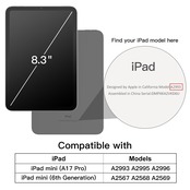 iPad mini (A17 Pro 2024 モデル、第7世代) / mini 6 (8.3インチ、2021モデル、第6世代)用の特別デザインです。対応モデル:A2993 / A2995 / A2996 / A2567 / A2568 / A2569。ご購入の前、おデバイスの裏面にあるモデル番号をご確認ください