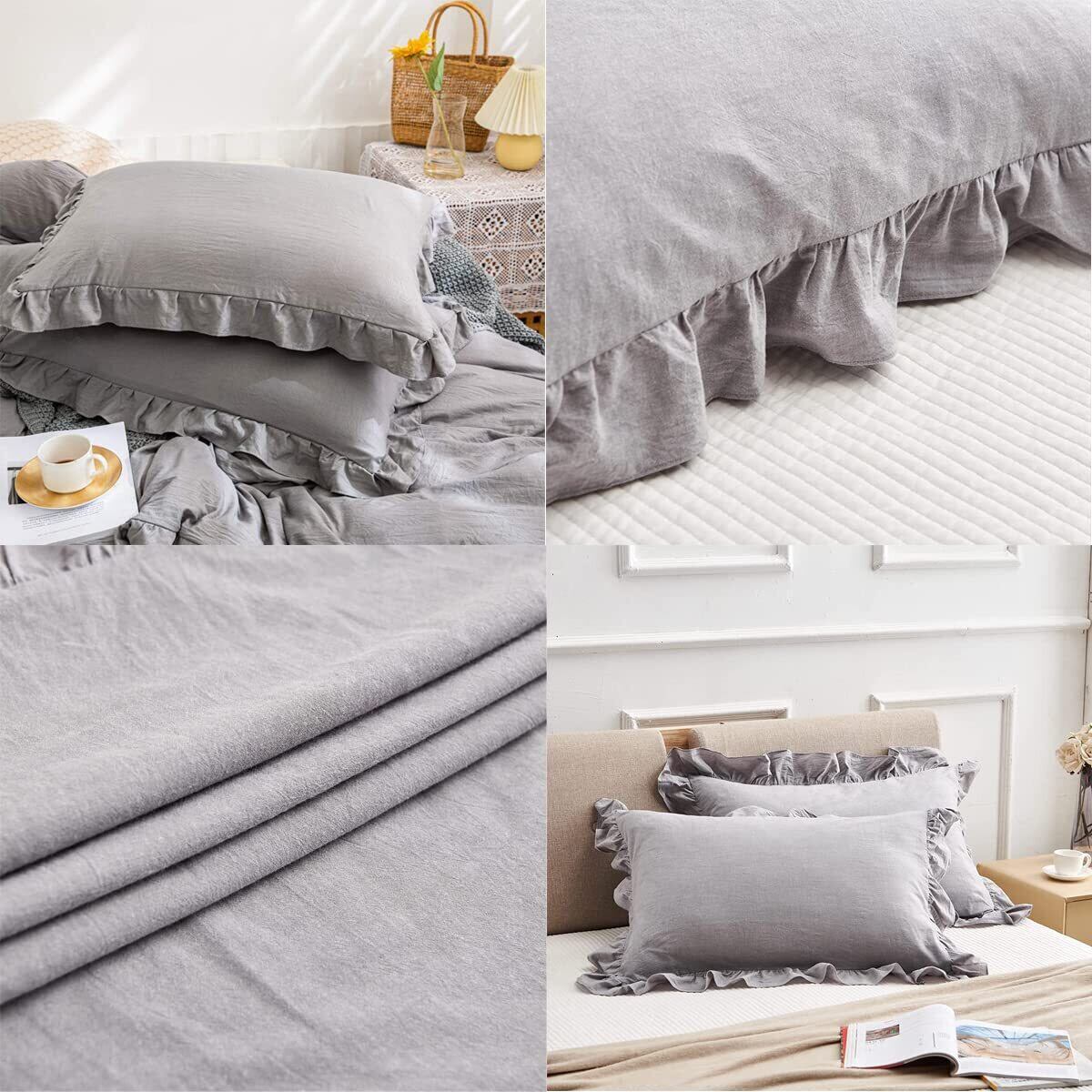 【在庫処分】Forhomelife 枕カバー 2枚セット ピローケース 43x63 フリル 封筒式 まくらかばー ピーチスキン加工 抗菌 防臭 洗える かわいい ライトグレー