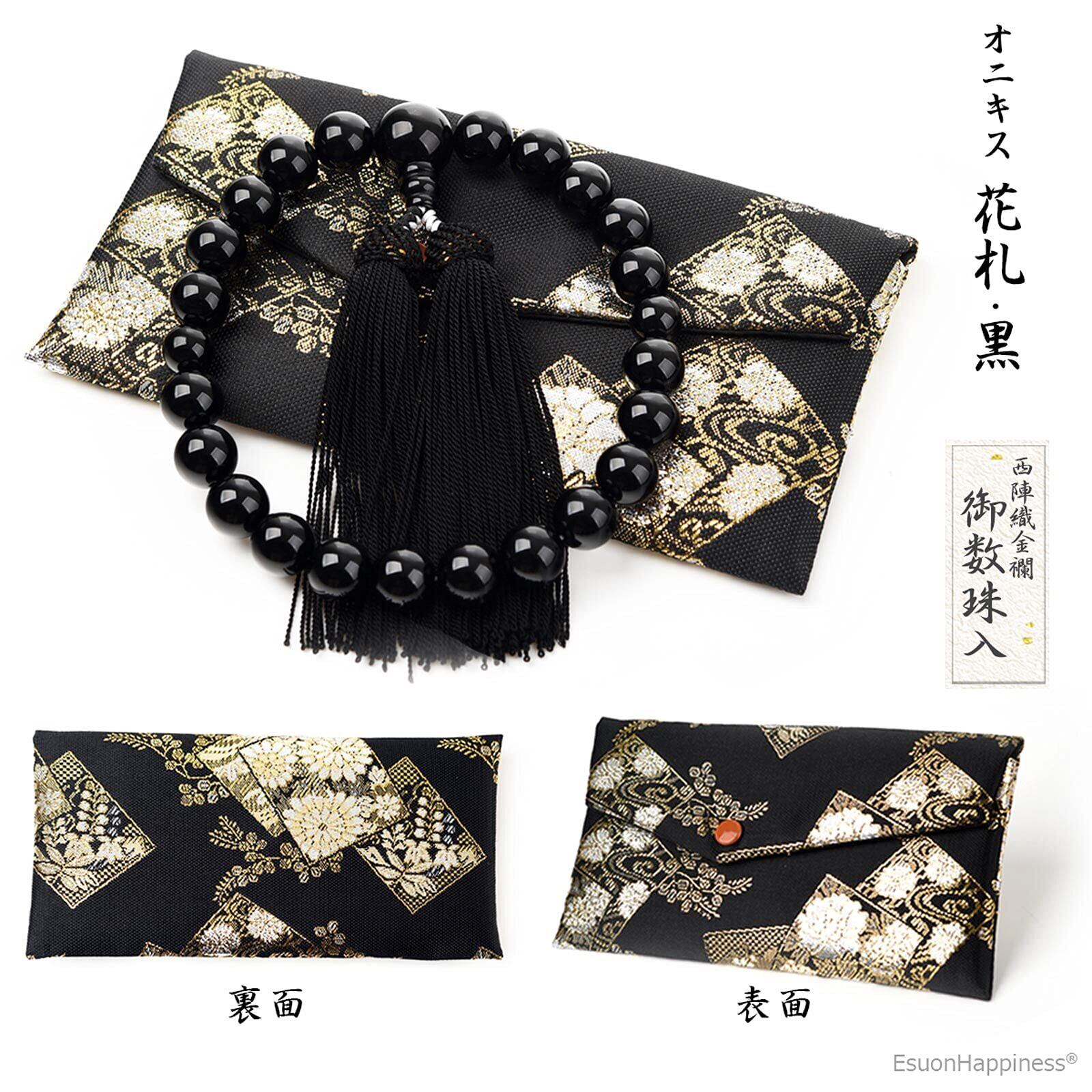 数珠 男性用 オニキス 12mm 天珠 数珠入れ 付 京都 西陣織 金襴 数珠袋 虎目石 赤虎目石 青虎目石 22玉 すべての宗派で使える 略式 念珠 天然石 頭房 セット(12mm, 天珠オニキス)