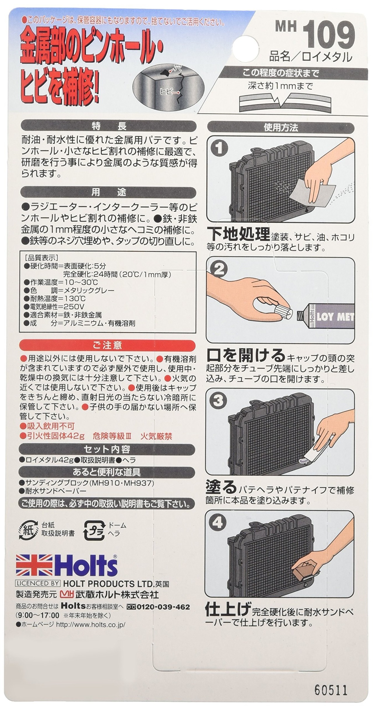 【新着商品】ホルツ 補修用パテ 金属パテ ロイメタル 42g Holts MH109 自動車バイク板金 金属部分ピンホール ヒビ補修