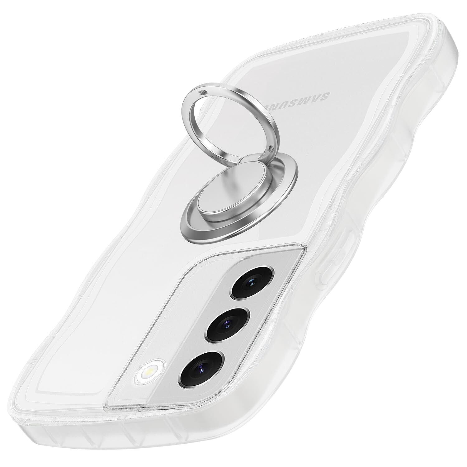 Galaxy S21 ケース クリア ウェーブ リング付き TPU波状のバンパー 透明 スマホケース かわいい うねうね ギャラクシー S21 ウェーブ デザイン 可愛い 韓国 女性用 薄型 人気 おしゃれ 耐衝撃 ストラップホール付き(クリア)