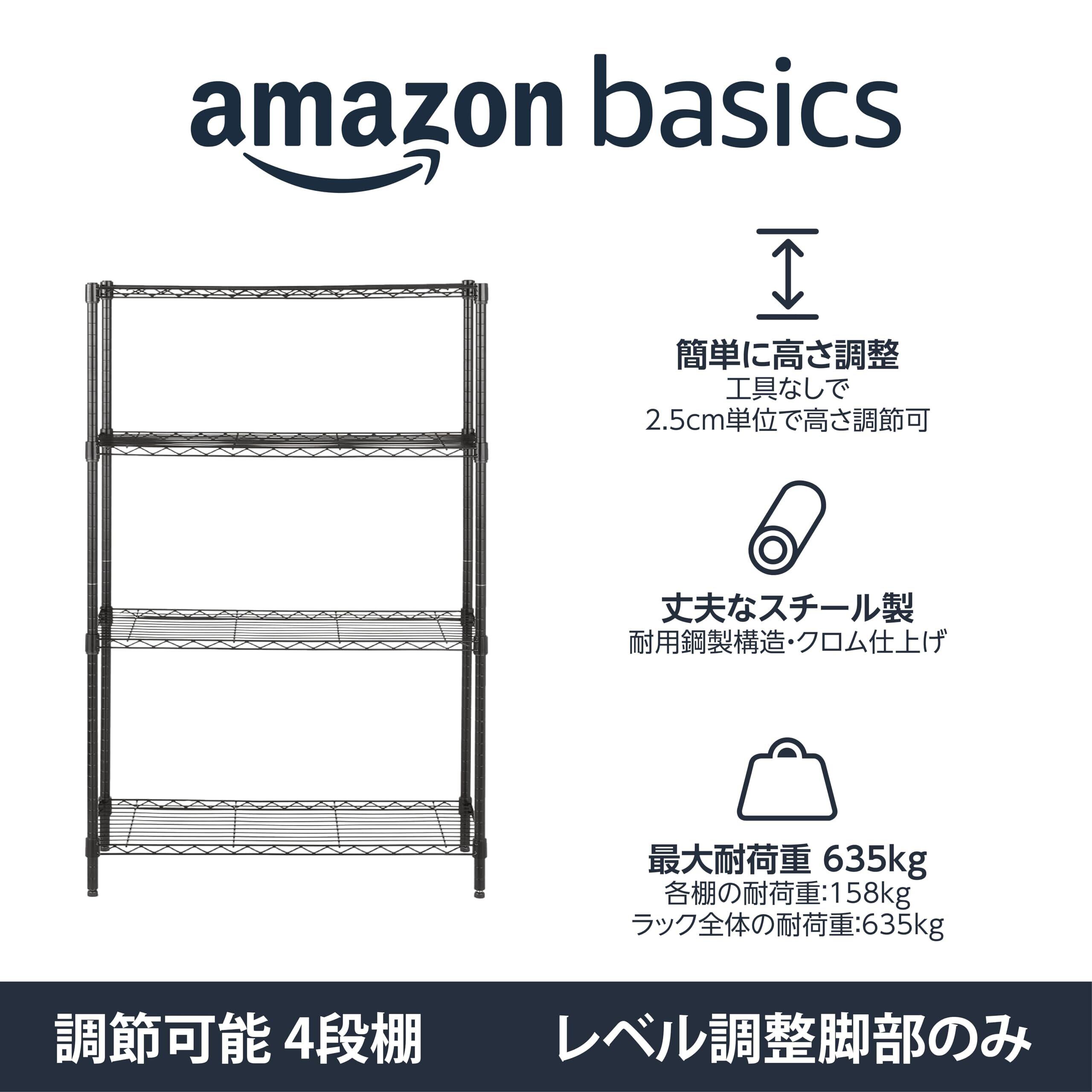 ベーシック 4段スチールラック 棚 メタルラック キッチンラック 耐荷重635kg 幅91.4 x 奥行35.6 x 高さ137.2cm ブラック