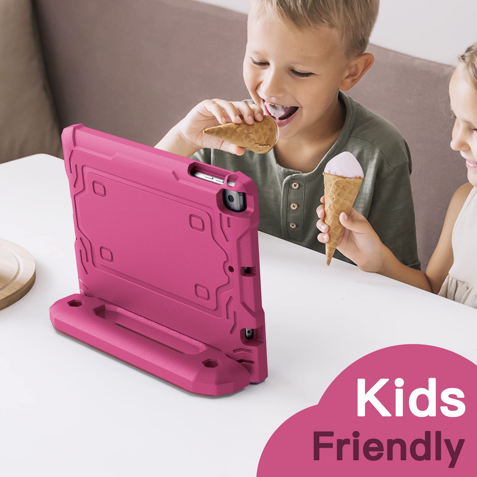[多目的スタンド] 滑り止めの風合いで子供に優しいハンドルのデザインです。持ち?びやすいし、両手を解放して自由に視聴を体験するあるいは快適なタイピングのために折りたたんで、頑丈なスタンドに変えるのも易しいことです