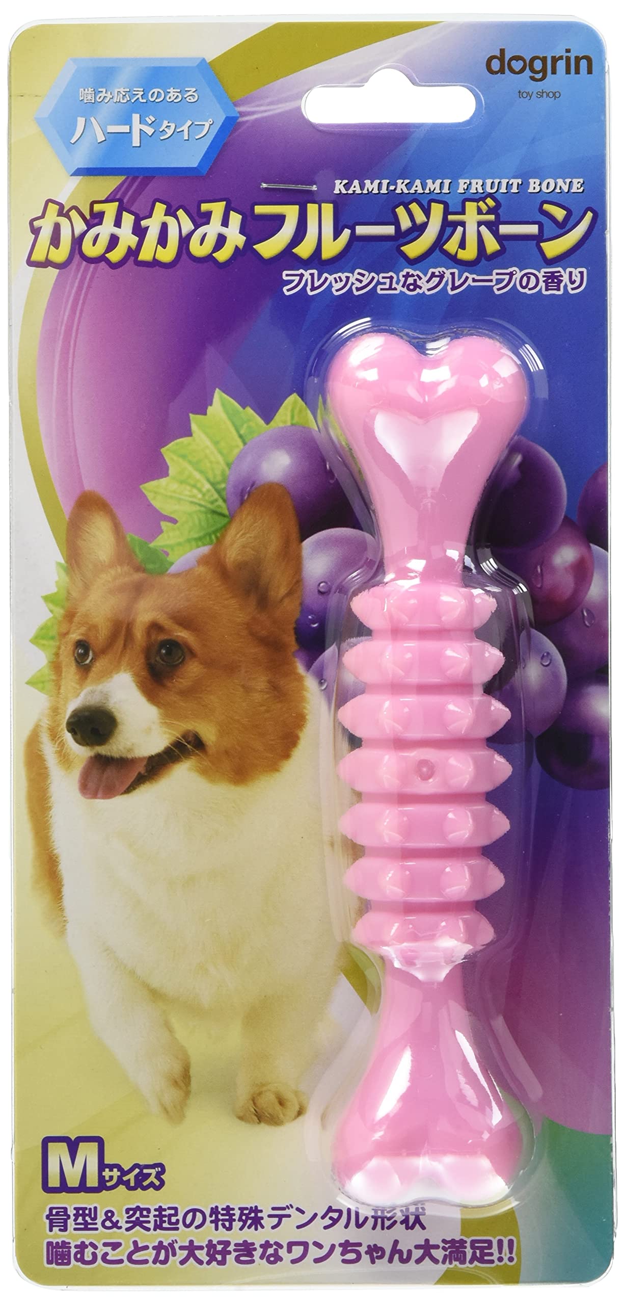 骨型&突起の特殊デンタル形状。噛むことが大好きなワンちゃん大満足。適度な固さのセミハードタイプで、満足感のある噛み心地。わんちゃんが喜ぶグレープフレーバー。
