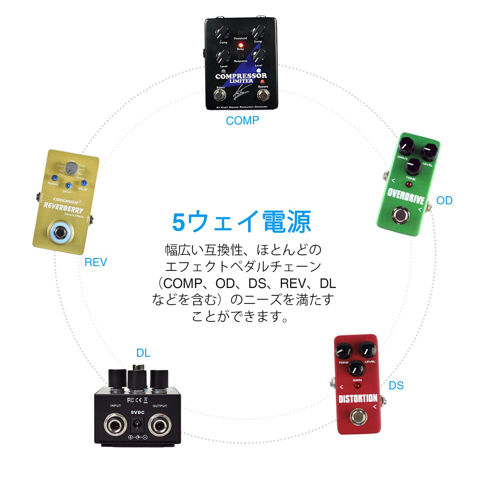 エフェクター電源 5チャンネル 9V DC 1A(1000mA) パワーサプライ 電源供給 エフェクターペダル用 エレキギター用 エフェクター電源 (5チャンネル電源)
