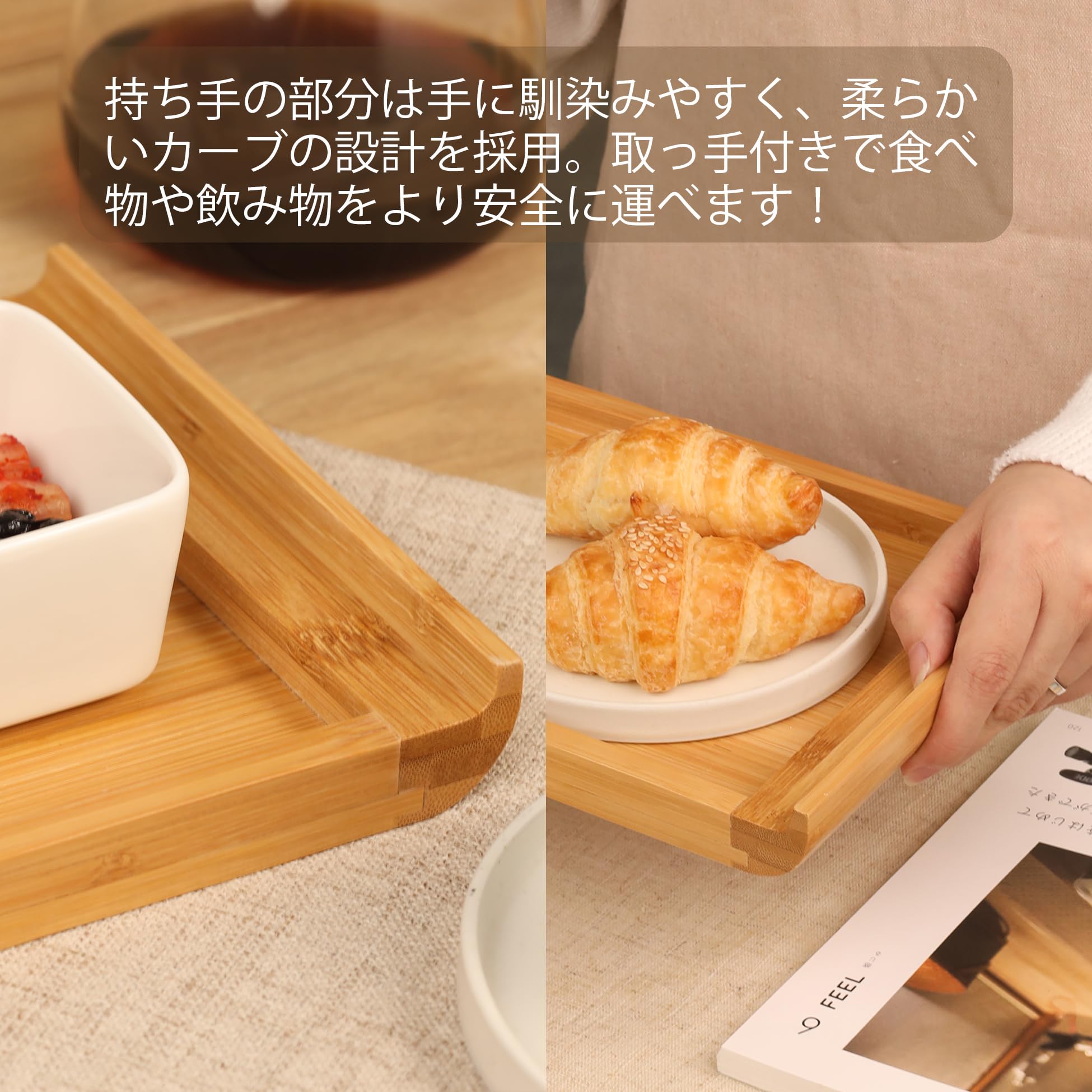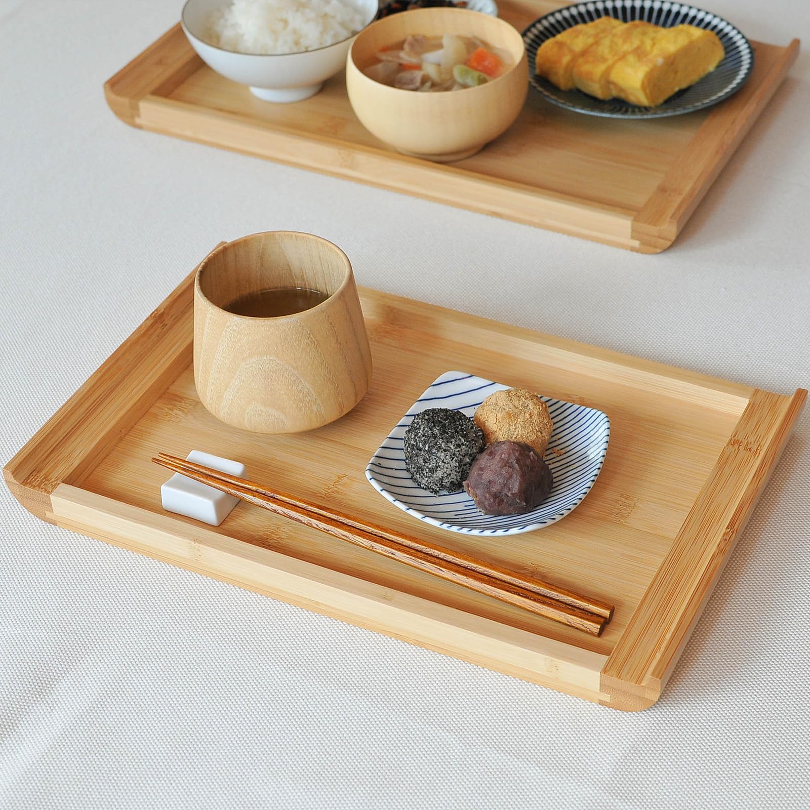 【FSC認証製品】竹美(TAKEMI)竹製トレー 2点セット トレー お盆 カフェトレー 滑り止め 業務用 食事トレー 小物収納 おしゃれ 大きい 皿 長方形 TM-T2