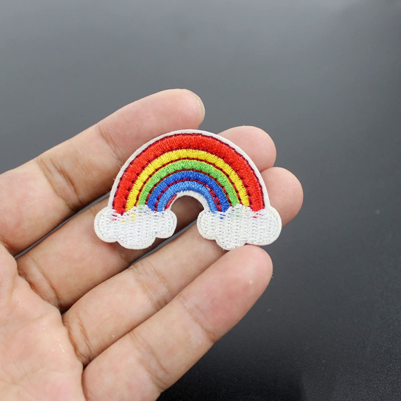 【特価セール】Hapifam アイロンワッペン アップリケ ワッペン わっぺん 虹 目印 子供用 アイロン レインボー 入園 かわいい 30点セット