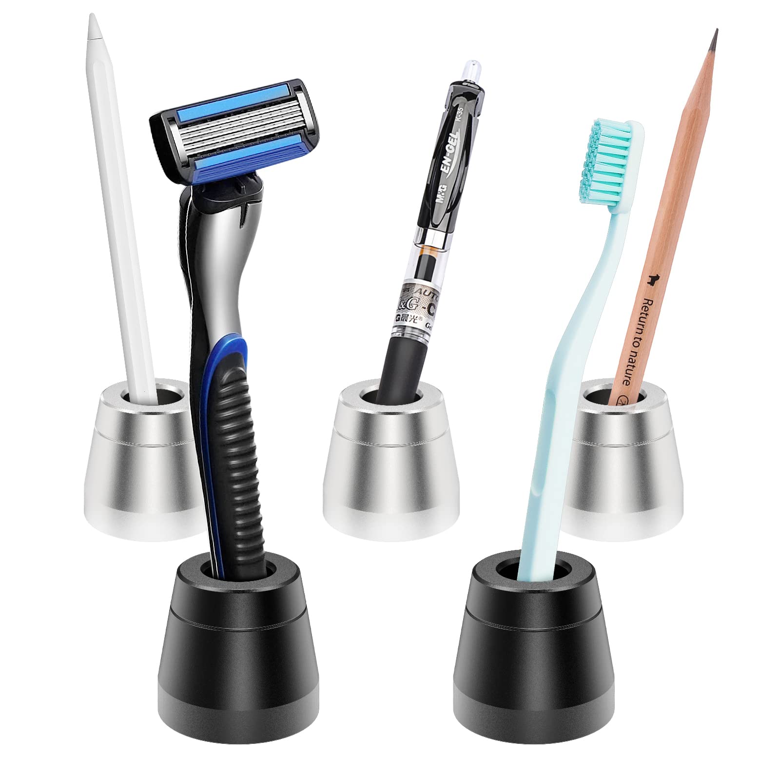AKEIE ペン立て 1本 おしゃれ ペンスタンド 筆差し 滑り止め付き 万年筆 鉛筆 ボールペンに対応 アルミニウム合金 (2pcs, 銀)