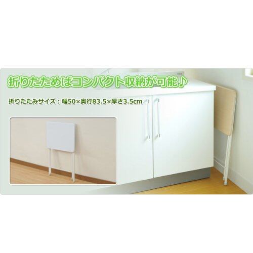 ●折りたたみ式のミニテーブル●ダイニングの補助机としても活躍●たためば約3.5cm。すきまに収納可能