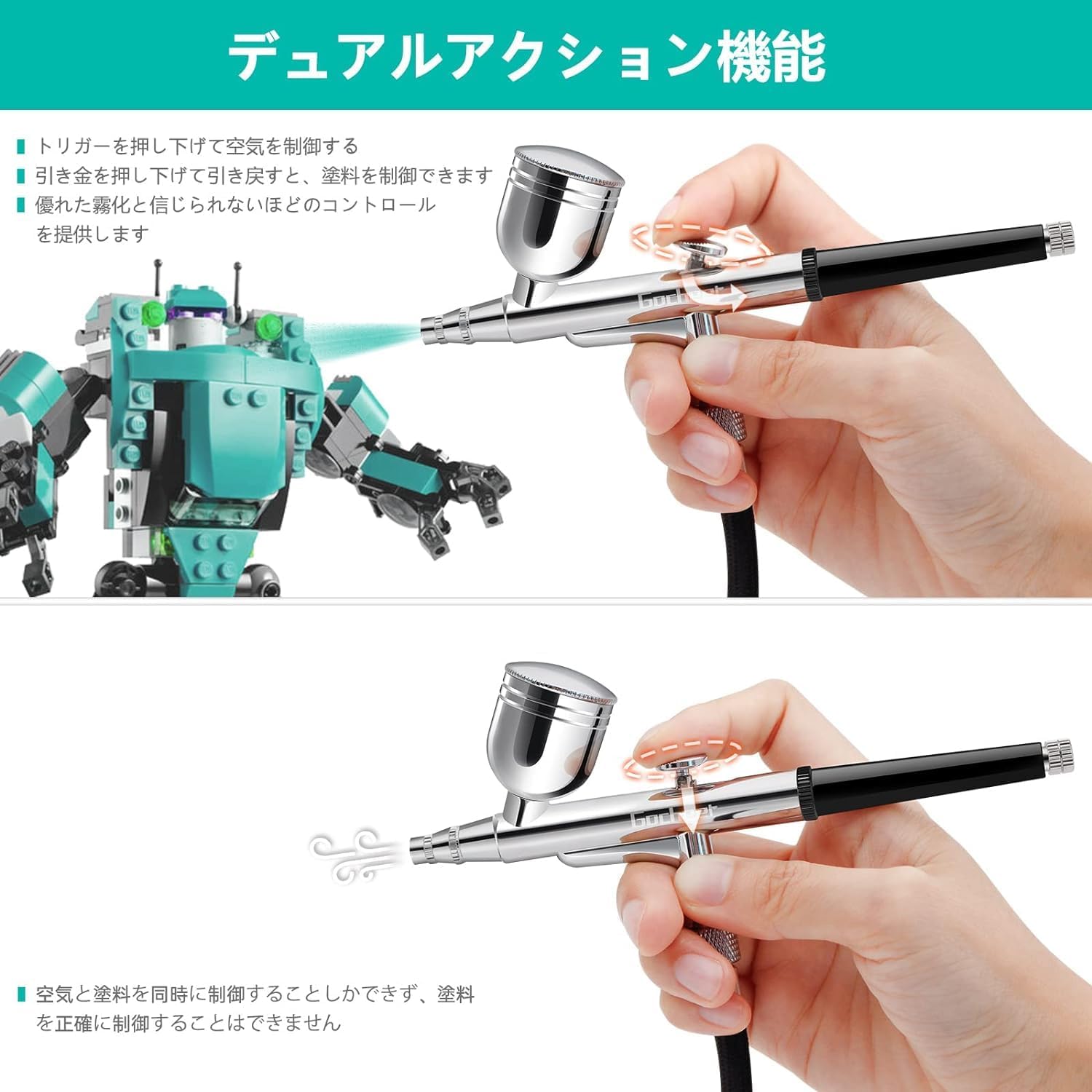 Gocheer 48PSI エアブラシ コンプレッサー ミニ エアブラシ セット 3段階圧力制御 ダブルアクション 多機能 エアーブラシ ダブルアクション ク エアブラシキットとの塗料 塗装 絵画 DIY 日本語説明書 黒