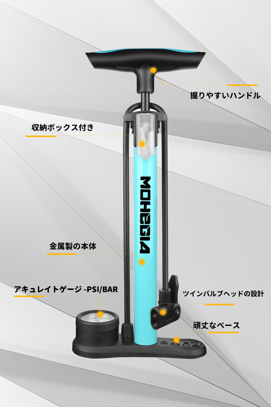 【新着商品】MOHEGIA 自転車 空気入れ: フロアポンプ - 仏式 米式 英式バルブ対応 - 160PSI スケール/デジタル圧力計
