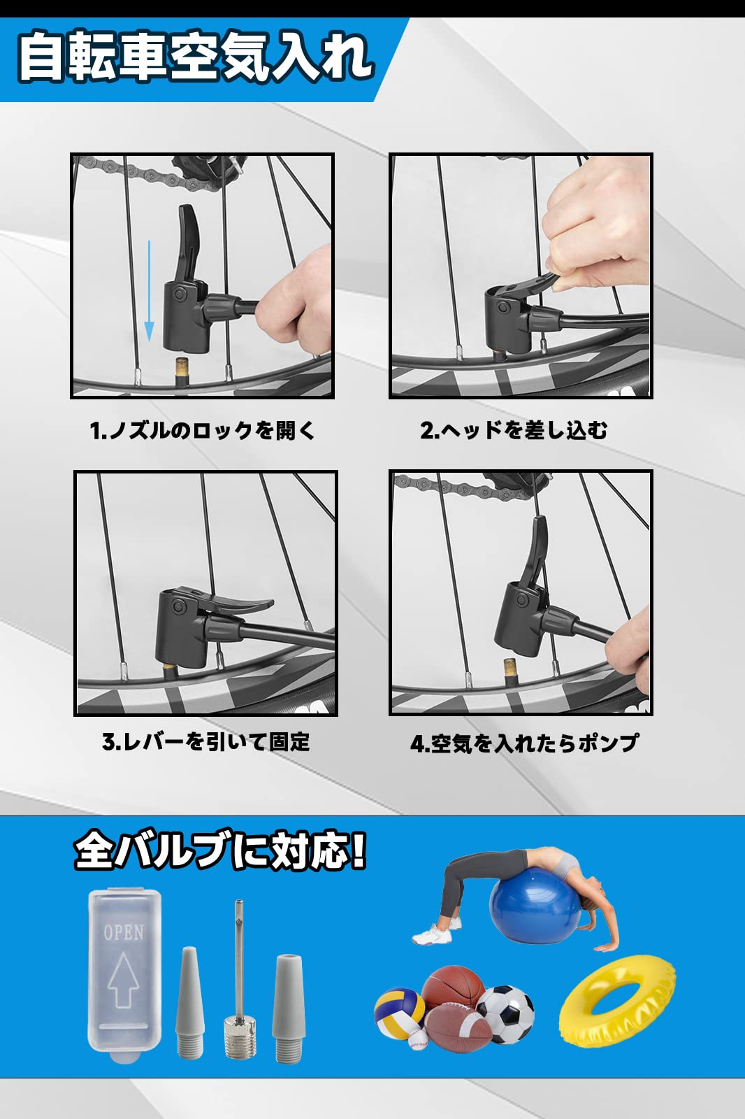 【幅広い用途】-このフロアポンプは、BMX、マウンテンバイク、ロードバイク、通勤用バイク、電気自動車、オートバイ、エアマットレス、スイミングリング、バスケットボール、フットボール、インフレータブルベッド、およびインフレータブルボール玩具用に膨らませることができます。