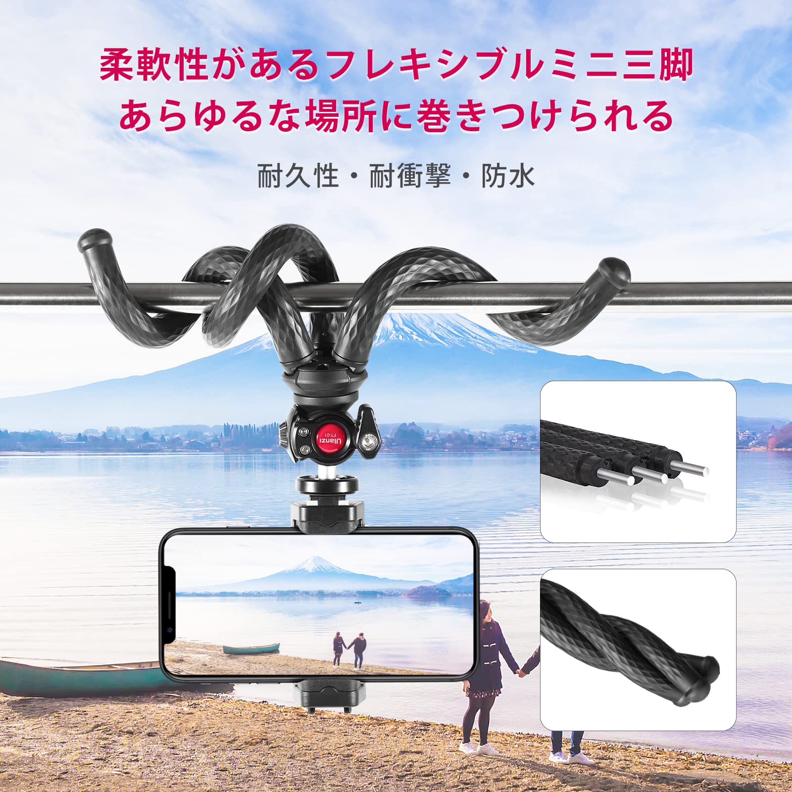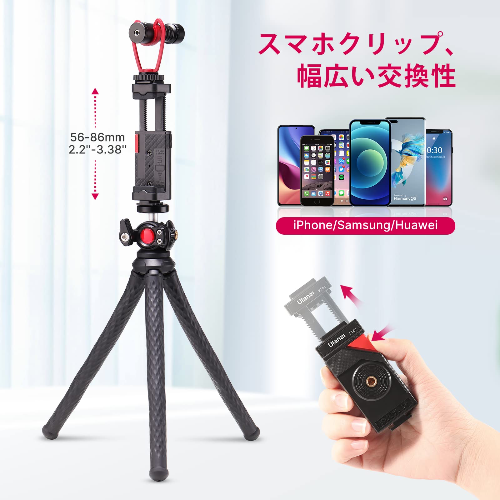 ULANZI スマホ 三脚スタンド くねくね フレキシブル三脚 スマホホルダー付き、Gopro用マウント付き 自由雲台 360度回転 1/4インチネジ スマホスタンド三脚 ミニ三脚 iPhone/Android/GoPro/デジカメ/ビデオカメラ/プロジェクター/自撮り/写真撮影などに対応