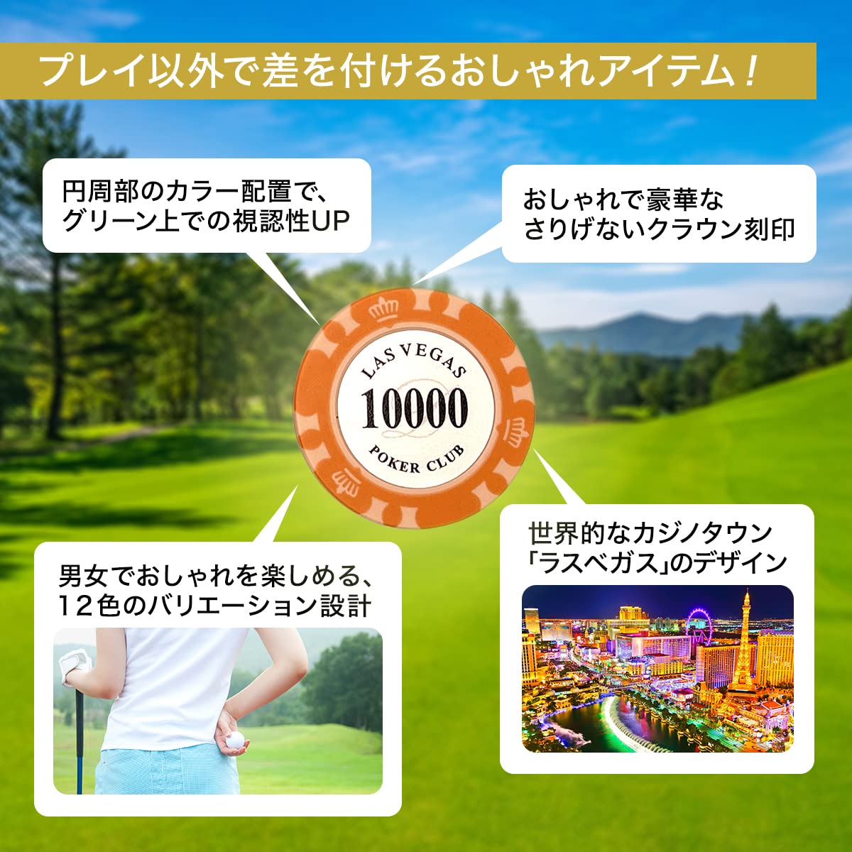 オシャレで女性にも人気のカジノチップ風ゴルフマーカー。世界的に有名な歴史あるカジノタウンのネーミング入りです。