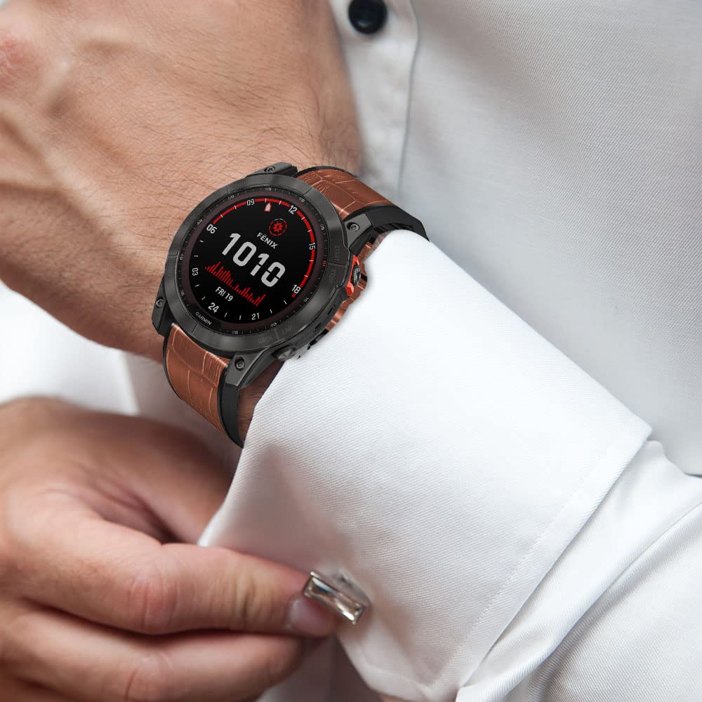 [HeeNia] レザーバンド QuickFit 26mm Garmin Quatix 8 51mm/Tactix 8 51 mm/Fenix 7X Pro Solar/Instinct 2X/Garmin Fenix 7X/GPS/6X Pro/6X Sapphire GPS 対応 バンド 革 ストラップ スポーツバンド 時計ベルト ガーミン用 (ブラウン)