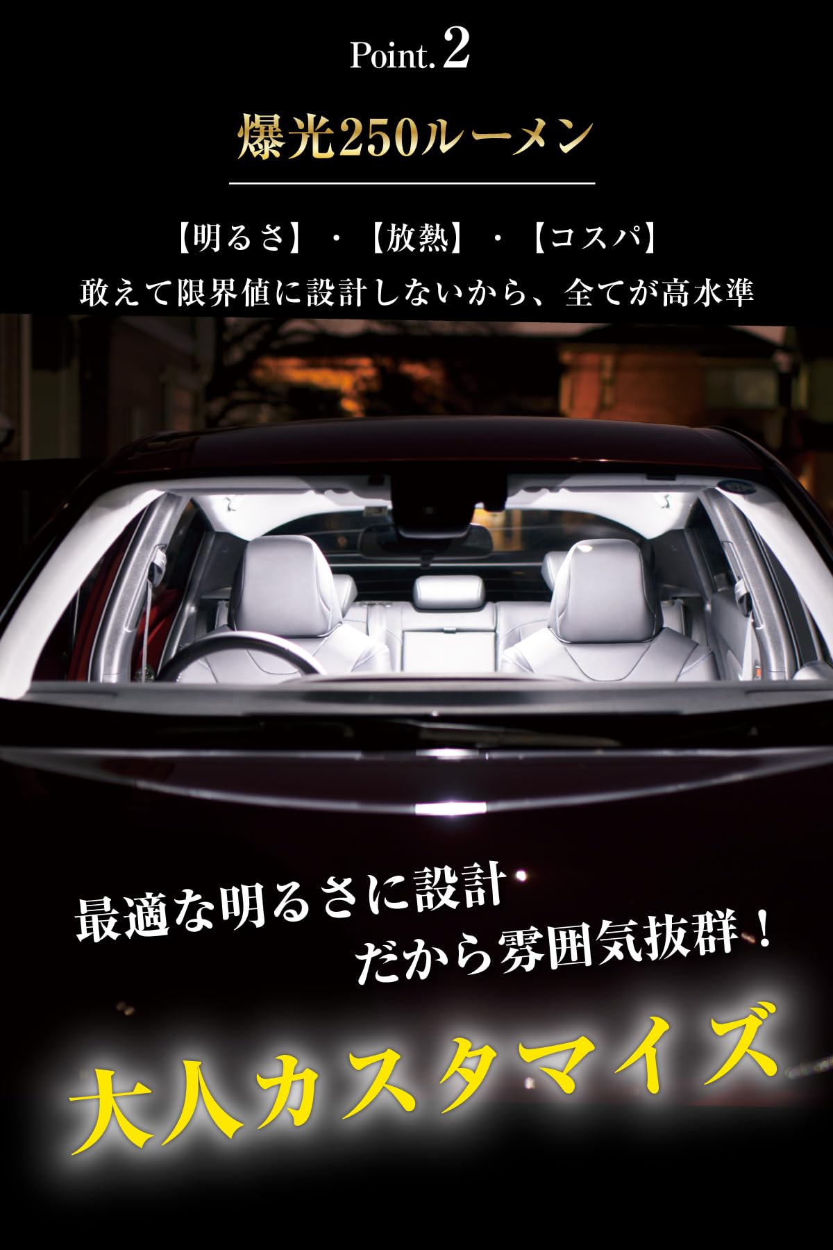 【ちょうど良い爆光】●ムード溢れる爆光 車内を明るくロマンチックな空間に●驚きの1球250ルーメン 所有する喜びを商品に搭載●凄く明るく高耐久 早く買っておけばよかった そんなLEDです