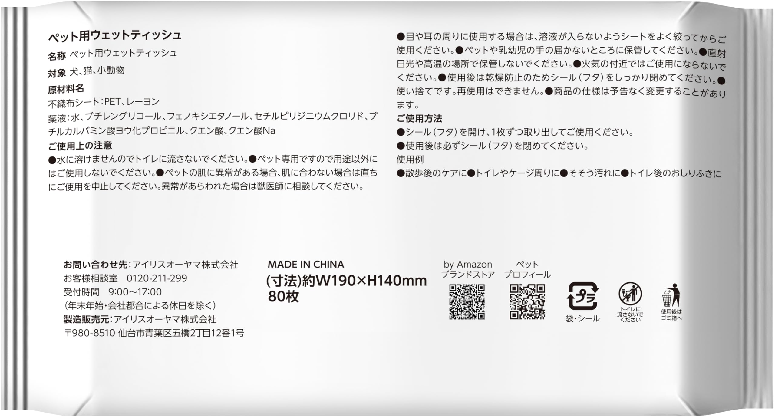 ペットの汚れ落としや身の周り品の除菌、ペットのふきとり消臭に。