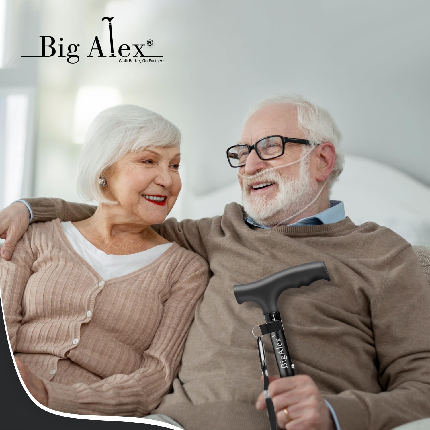 ビグアレクス(BigAlex)折りたたみ杖 ステッキ 自立杖 ブラック男性女性 5段階調節 おしゃれ 倒れない 高齢者 介護 軽量 アルミ 長さ調整可能 歩行支援 母の日 父の日 敬老の日 プレゼント (75-85センチ, ブラック)