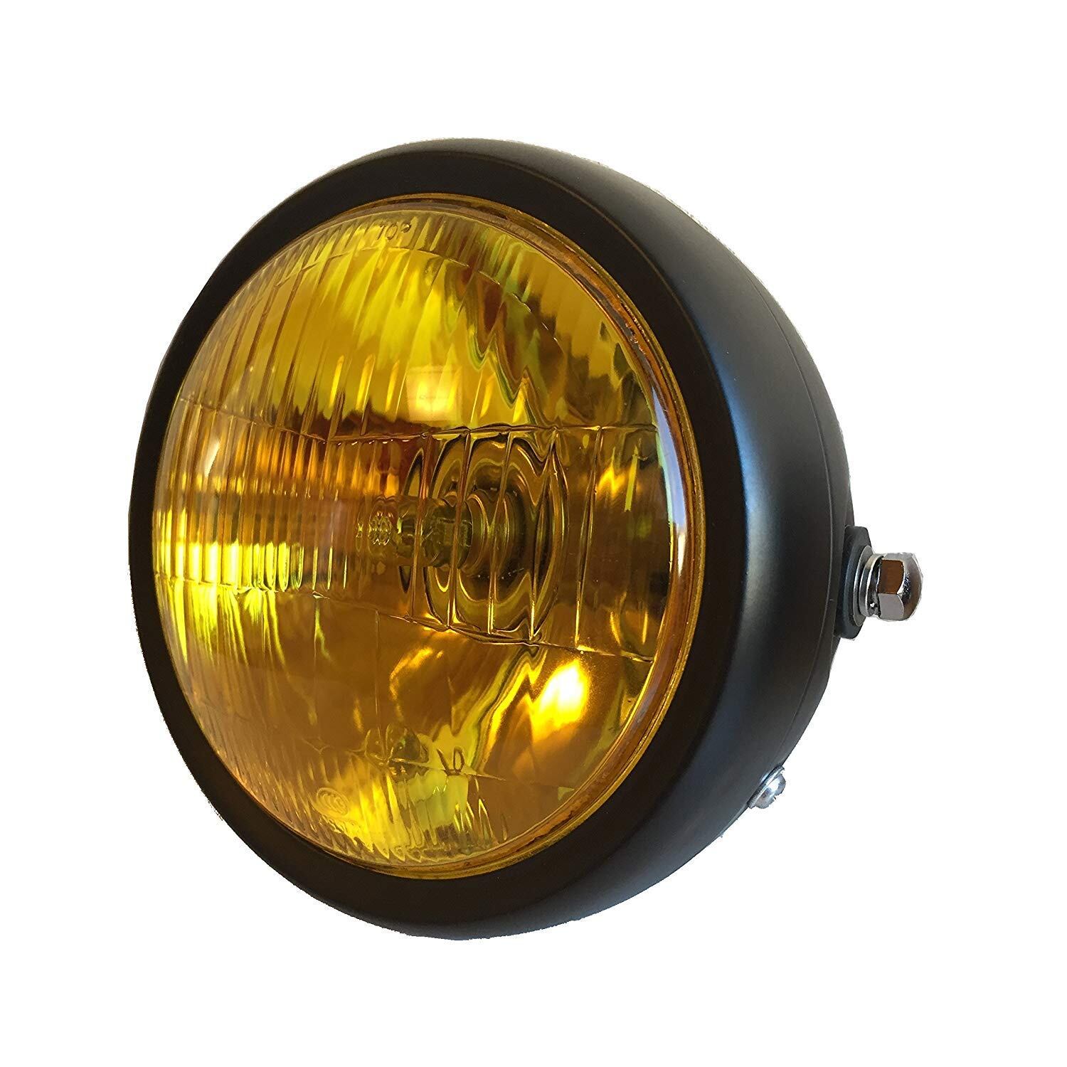 Karun 汎用 12V ヘッドライト ビンテージ バイク ブラック (イエローレンズ)