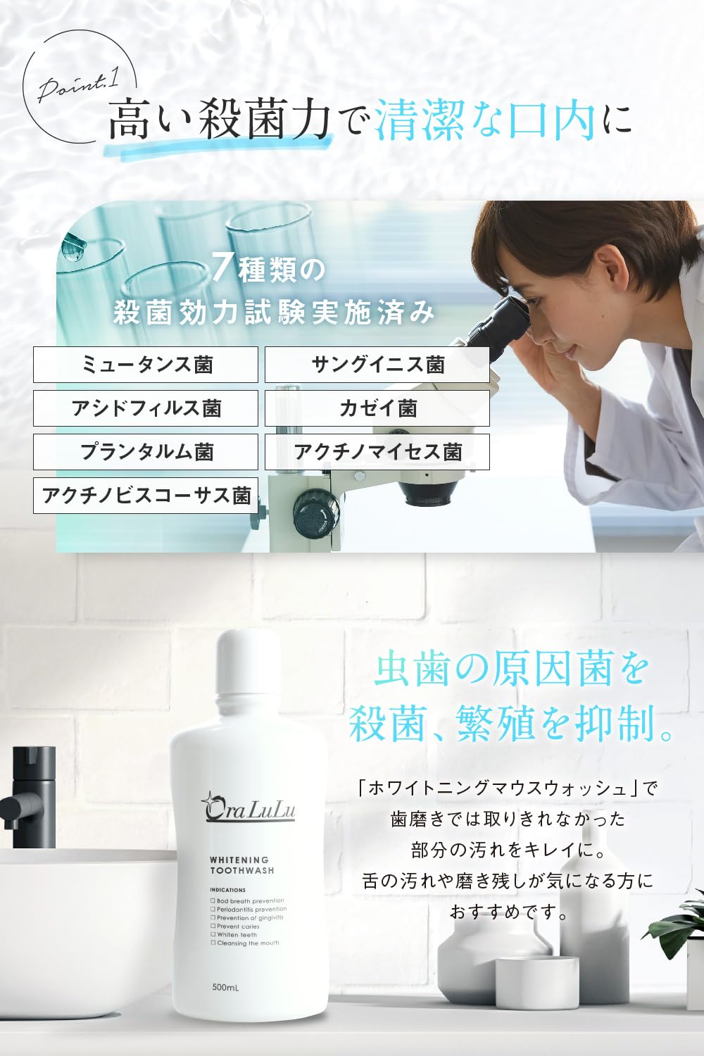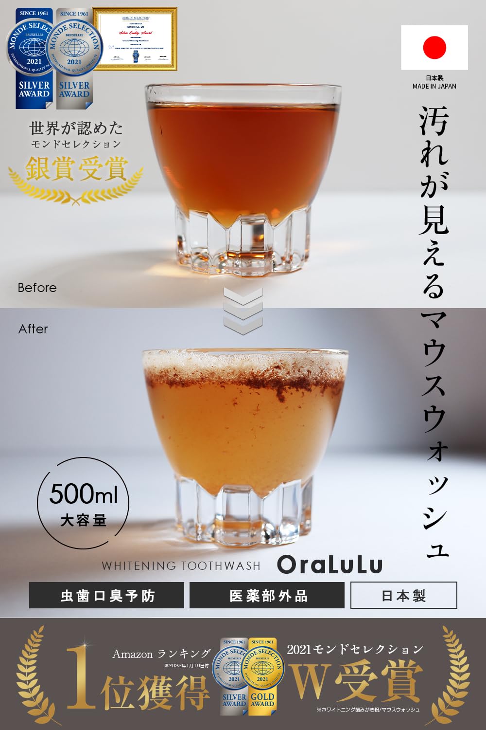 OraLuLu(オーラルル) [医薬部外品] ホワイトニング マウスウォッシュ (黄ばみ/口臭ケア/虫歯/歯周炎/歯肉炎予防) 500ml