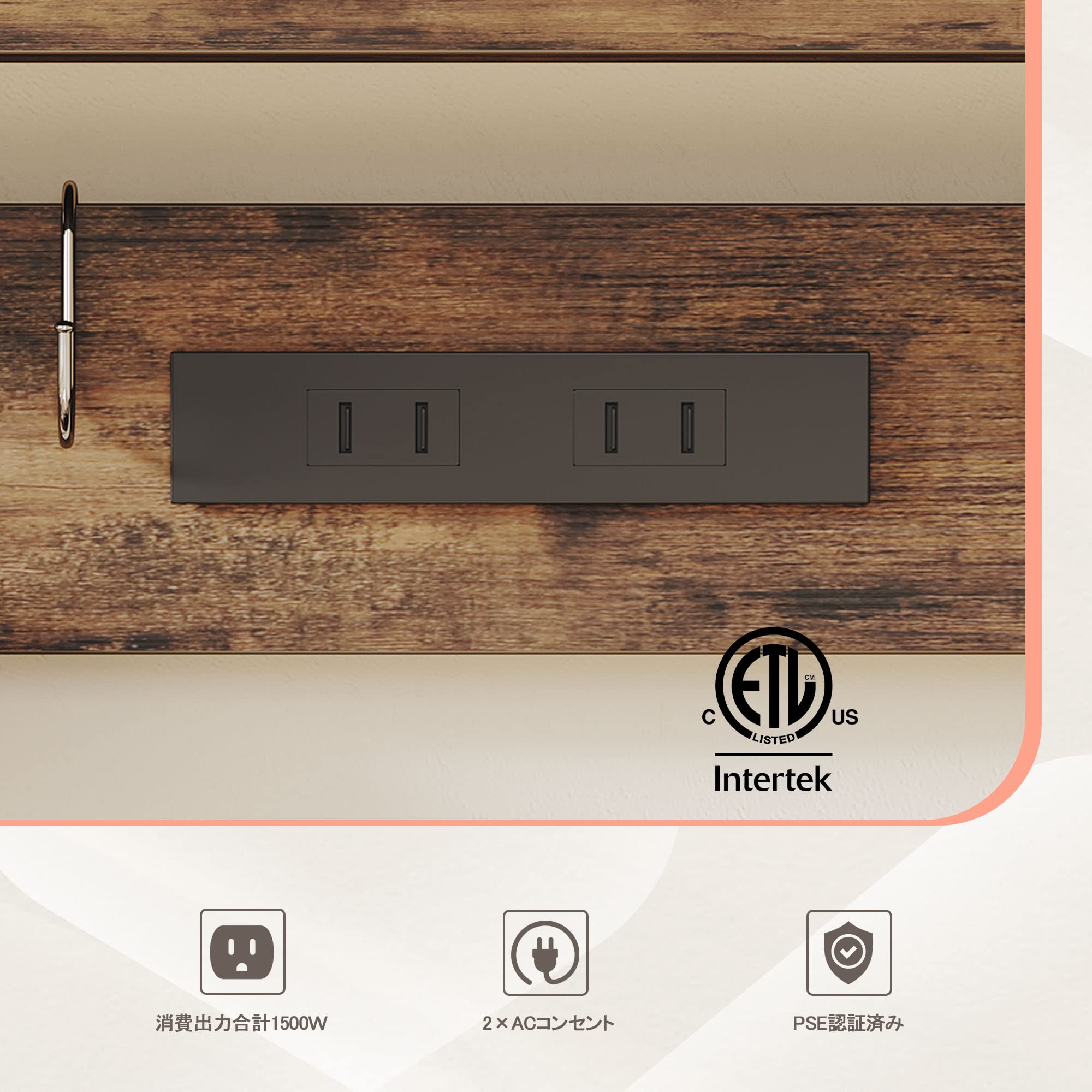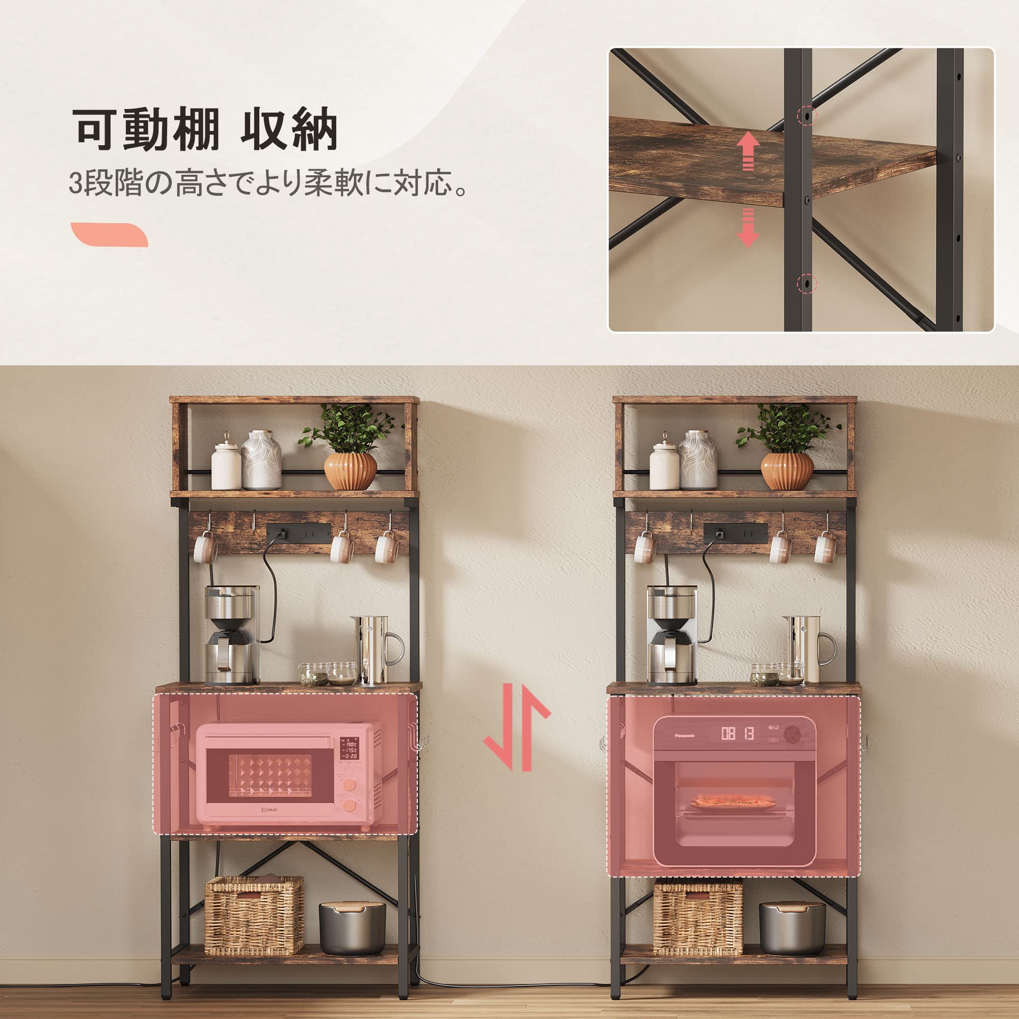 【数量限定】Bestier キッチンラック レンジ台 棚 レンジボード レンジおき台 2口コンセント付き 幅60cm キッチン収納 オープンラック オープンシェルフ レンジラック 省スペース (ブラウン)