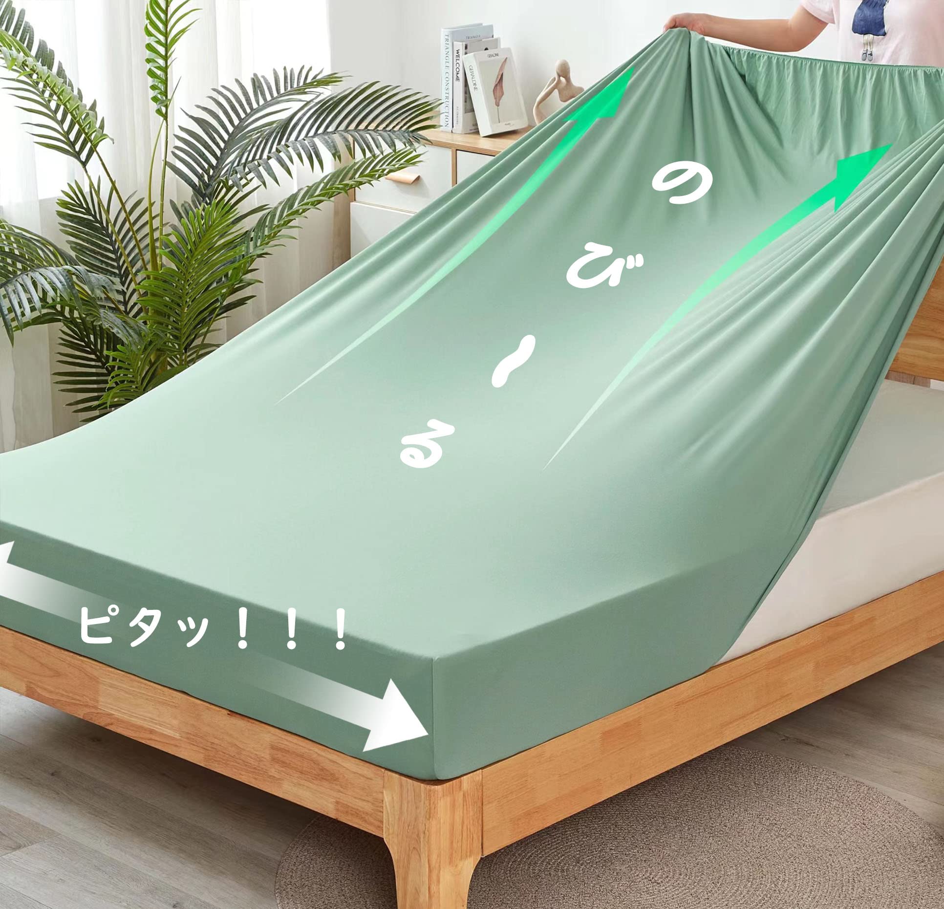【数量限定】【弾力 MAX】MISOLER ボックスシーツ 吸水速乾のびのび ベッドシーツ 毛玉なし ベッドカバー マットレス・敷ふとん兼用 ぴったり 通気性 夏・冬オールシーズン吸水速乾 しわにならない 着脱簡単 抗菌防臭 (ダブル~クイーン用・140〜160cm×180~210cm ライト グリーン)
